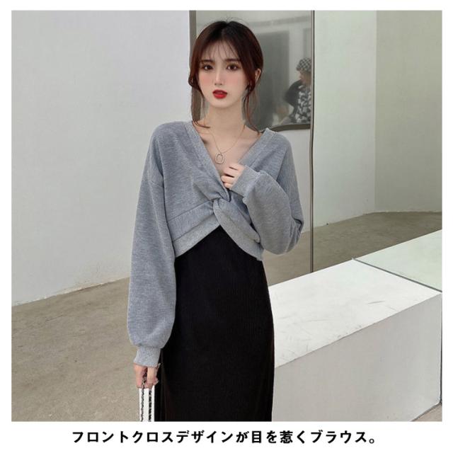 | キャミソールワンピース&クロスブラウス2点セット。 フロントクロスデザインが目を惹くブラウス。 Iラインのシルエットで女性らしく着ていただけます。 これ1つでトレンドのレイヤードコーデが叶うセットアイテム | |