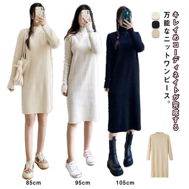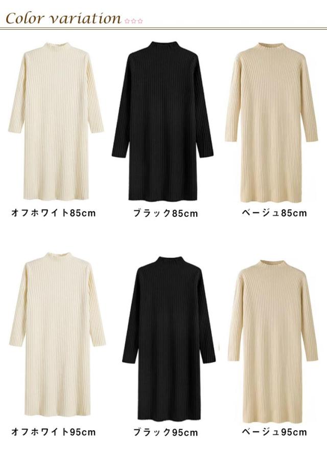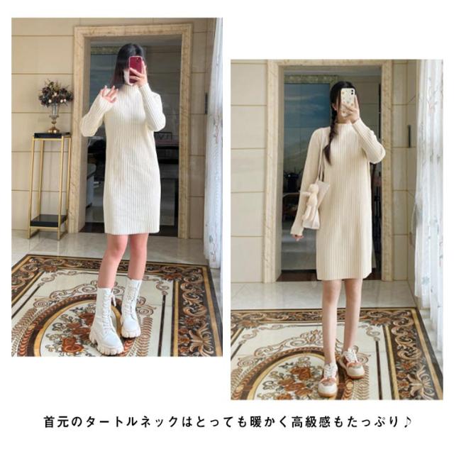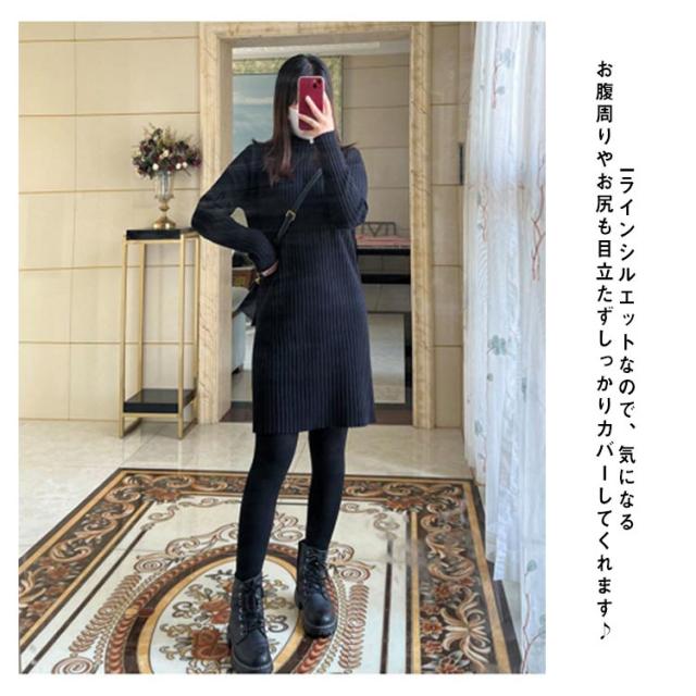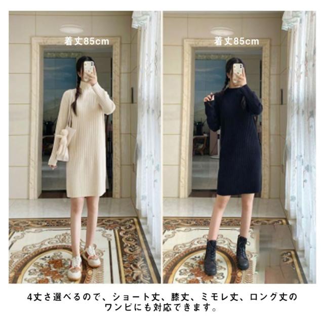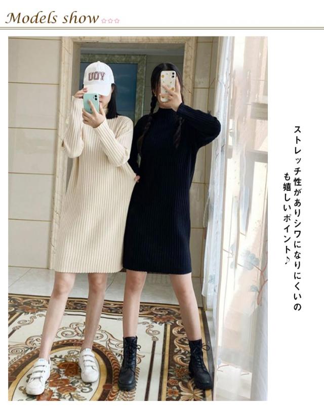 ワンピース 長袖 レディース チュニック ニットワンピース 大人女子 上品 無地 リブニット 秋冬 ハイネック 20代 30代 40代 お洒落 ストレッチ 4丈さ選べる ゆったり 着痩せ 大きいサイズ 送料無料
