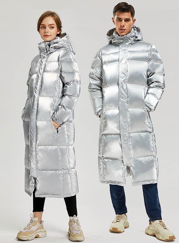 ダウンコート レディース メンズ ビジネス 男女兼用 超ロングダウンコート ペアルク ダウンコート ベンチコート 防寒性抜群 大きいサイズ スタンドカラー ダウン90% 暖かい 厚手 防寒 撥水 軽量 あったか ファー付き シルバー M L XL 2XL 3XLdb270s1s1la