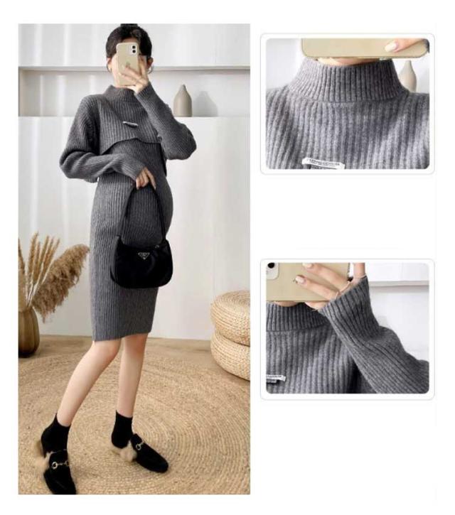| 妊娠中も自分らしくおしゃれを楽しめる、ニットセーターと、ニットワンピースのセットアイテムのマタニティウエア。 ワンピースにクロップド丈トップスはスタイルアップ効果抜群の計算されたシルエットです。 伸縮性のある素材なので穿き心地も良く、お腹が大きくなっても楽しめるワンピースです♪ 上品できれいめな印象ですが、ニットならではの柔らかい雰囲気で今らしいリラックス感も漂うアイテムです。 シンプルな素材感とすっきりとしたシックなデザインが、大人っぽい印象を与えます。 保温性に優れたニットを使用した、おしゃれなのにしっかりあたたかい、寒い季節にうれしいアイテムです♪ | |