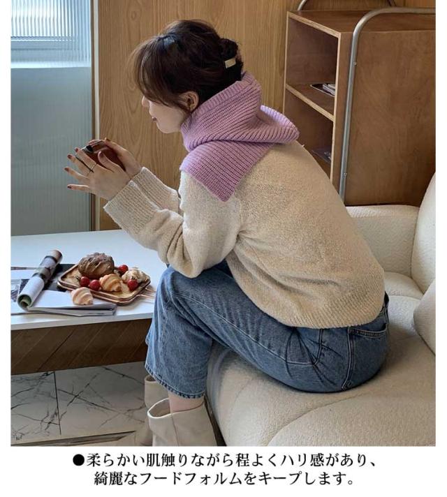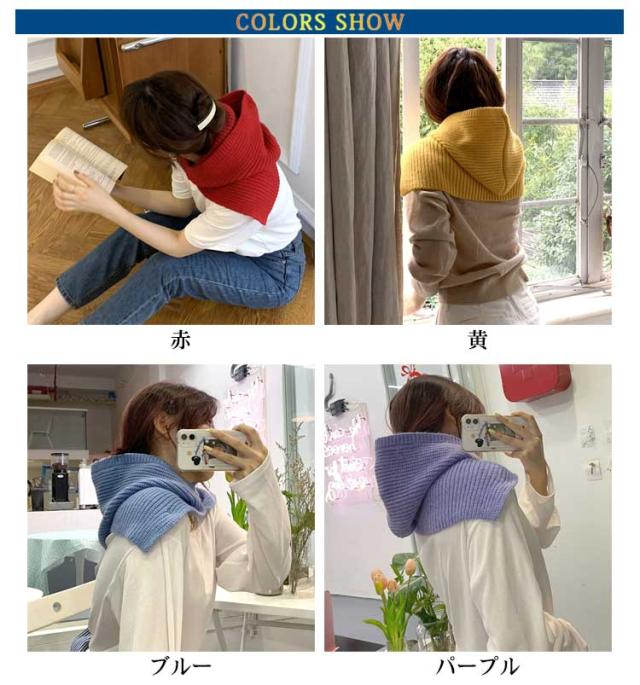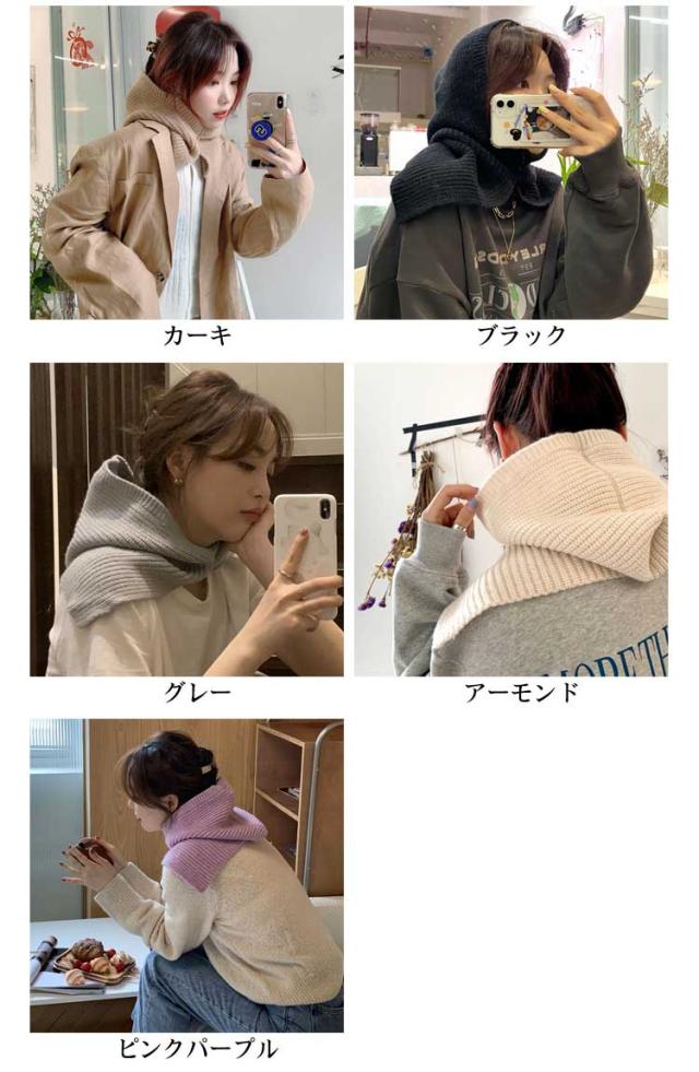 フードネックウォーマー ニット ネックガード ネックウォーマー メンズ レディース ユニセックス 暖かい カジュアル スナップ マフラー バラクラバ 帽子 自転車 バイク 通学 通勤 キャンプ アウトドア 男女兼用 韓国 かわいい 全9色