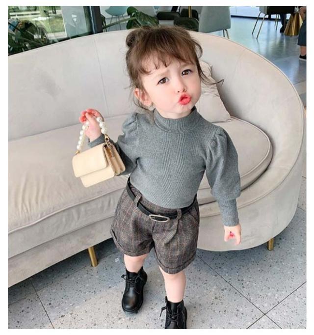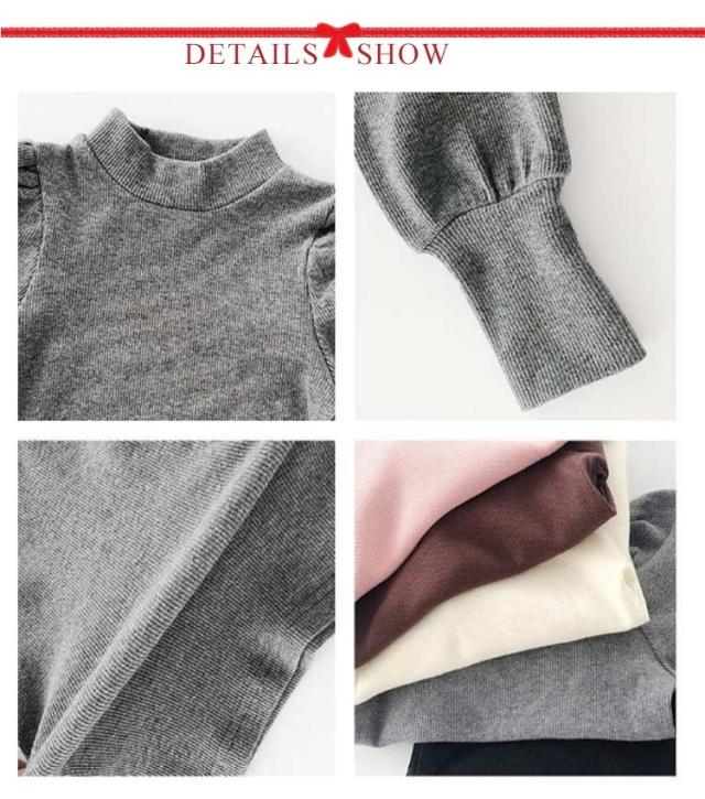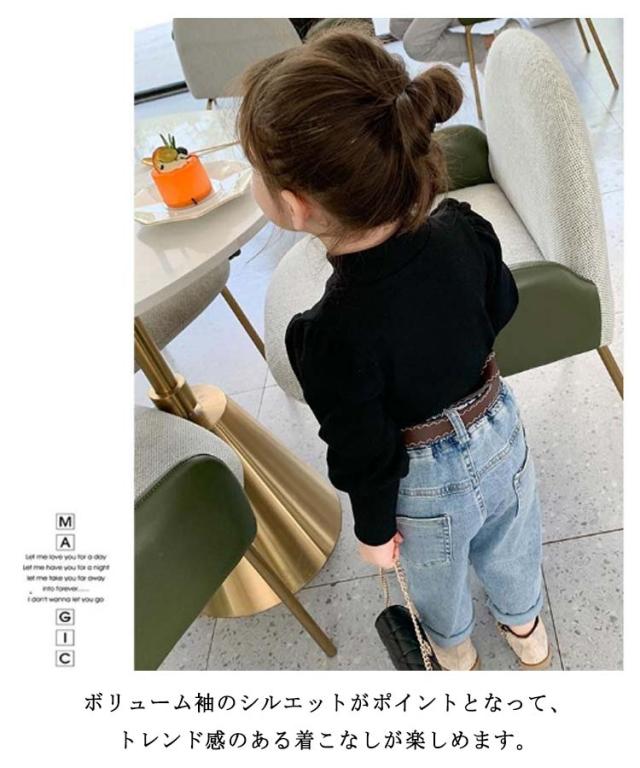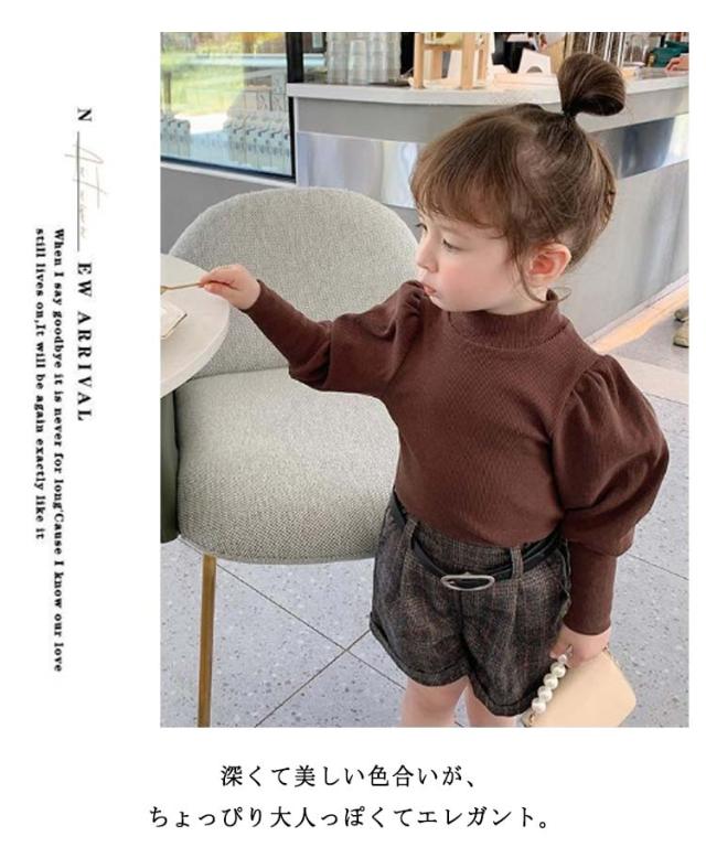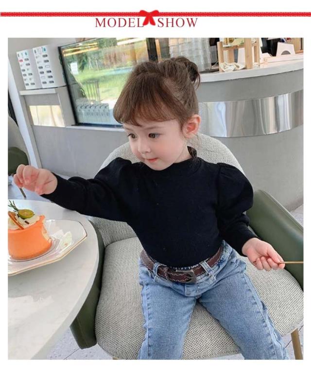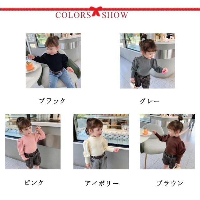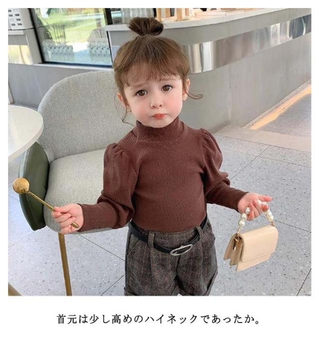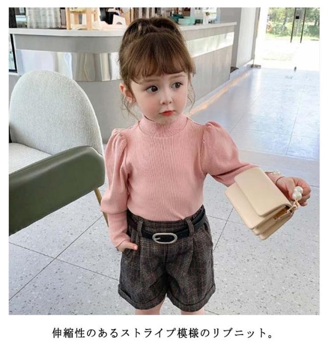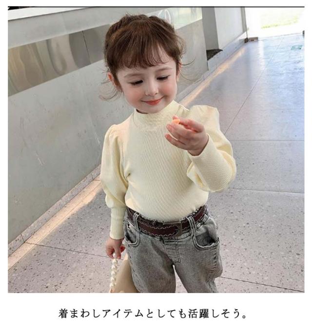 キッズ ニット プルオーバー 長袖 ニットトップス タートルネック 子供服 女の子 ニットセーター スリム 細身 パフ袖 ボリュームスリーブ 無地 薄手 リブニット 80 90 100 110 120 130 140 可愛い おしゃれ 【送料無料】