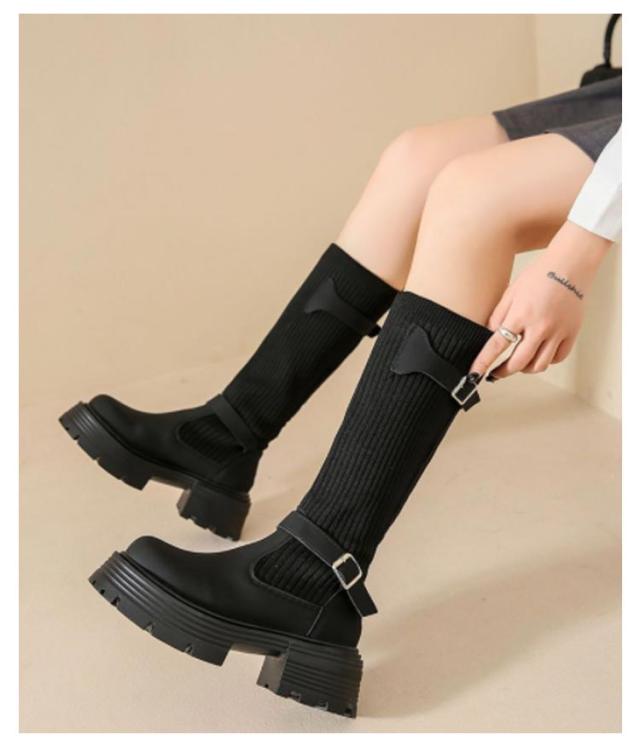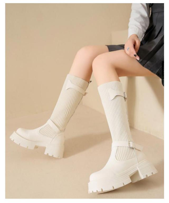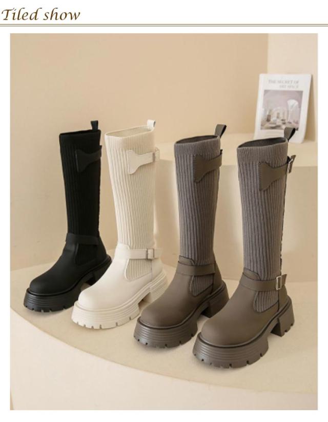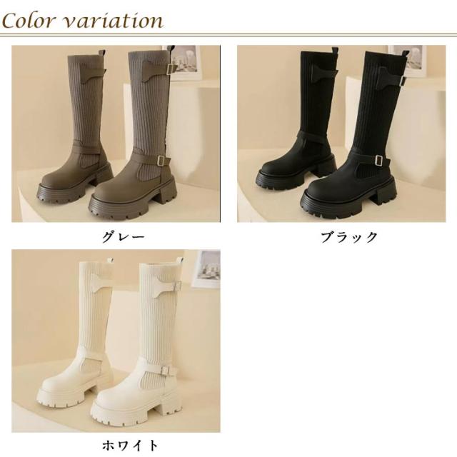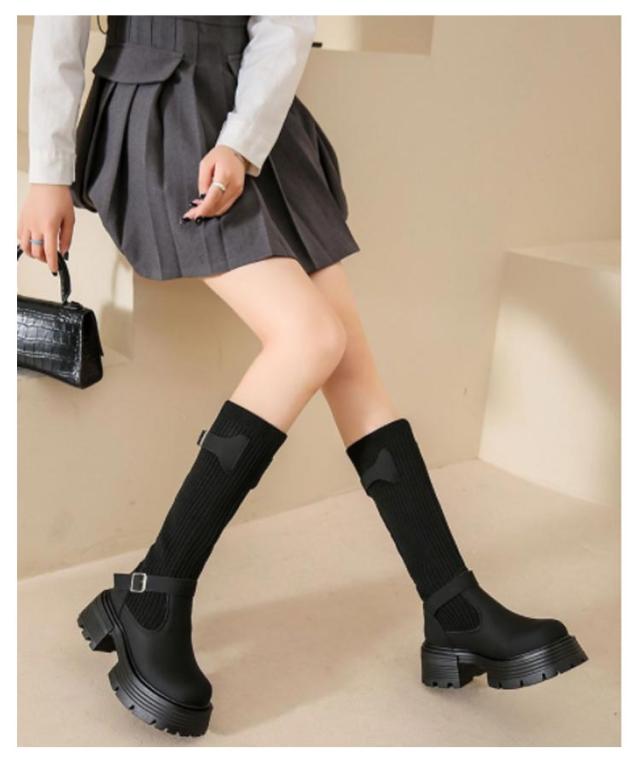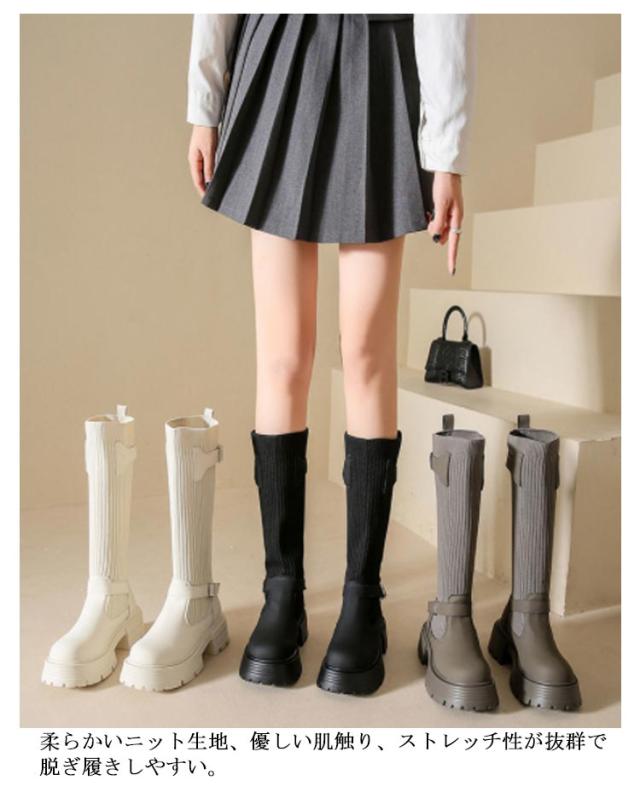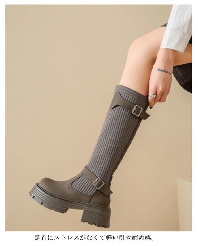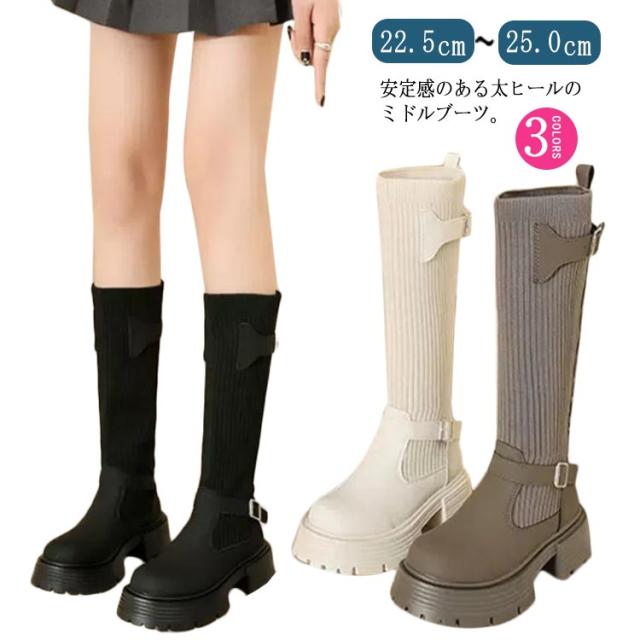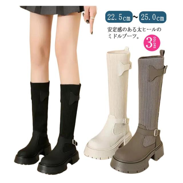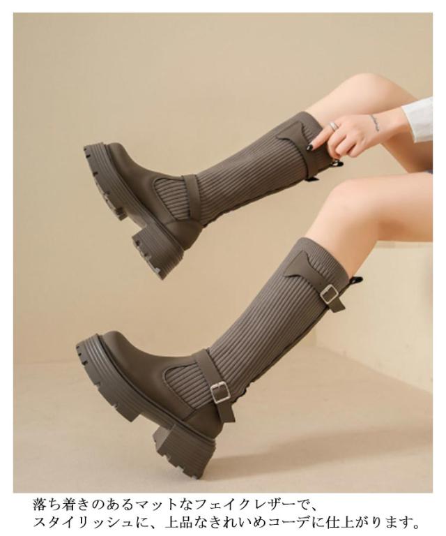 美脚 ミドルブーツ 秋冬 レディース ソックスブーツ 厚底 ブーツ ストレッチ シューズ ハーフ丈 痛くない 歩きやすい 走れる 安定感 大きいサイズ おしゃれ ニット 履きやすい