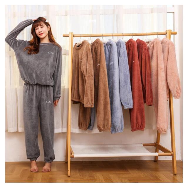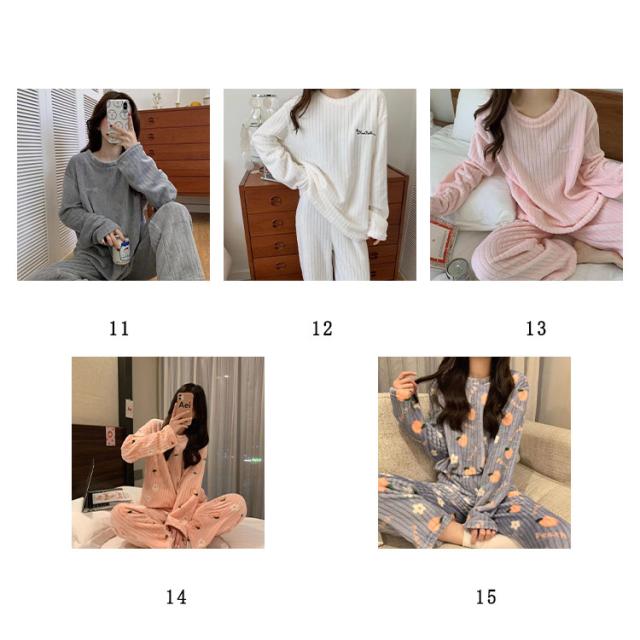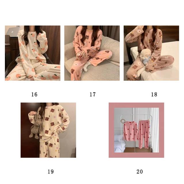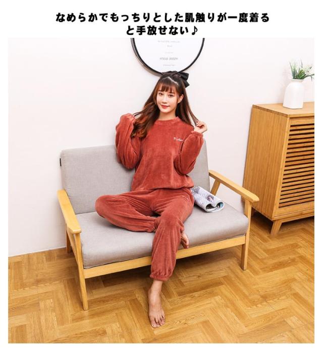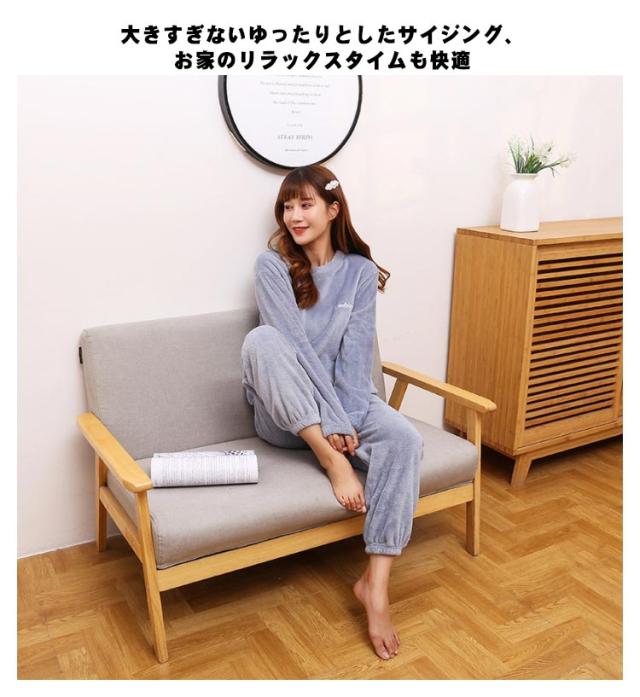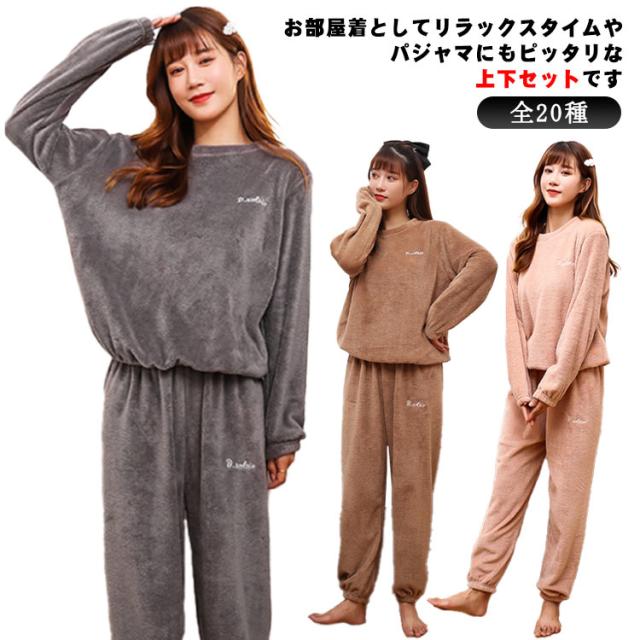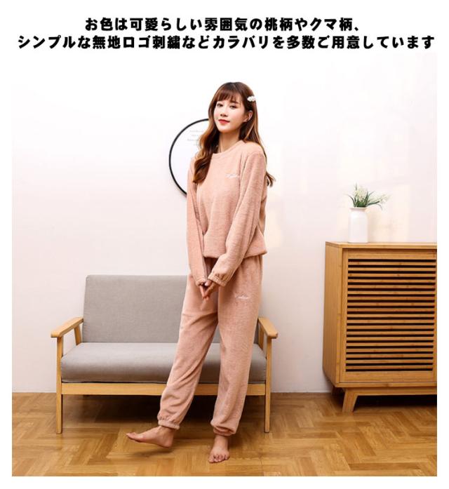 全20種 部屋着 セットアップ もこもこ パジャマ ぽかぽか 暖かい 秋冬 長袖 ルームウェア ナイトウェア ふわふわ 上下セット 無地 桃柄 熊