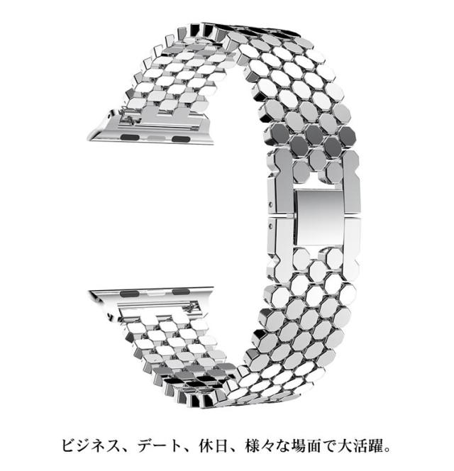 | 高級感が溢れる質感、耐久性の高いステンレススチールを使用の22mmバンド。 バンドの形状を綺麗に見せてくれるうろこデザイン。 ステンレススチールを使用しているため、錆びにくく、腐食に強いバンドとなっております。 おしゃれなデザイン、質感により、ベルトを更に高級に飾ります。 ビジネス、デート、休日、様々な場面で大活躍。 バンドの繊細な作りが美しく、より落ち着いた大人の雰囲気を演出します。 | |