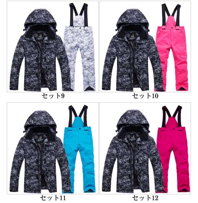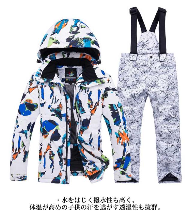 スノーボードウェア 上下セット キッズ スキーウェア 子供用 こども用 スノボウェア スノーウェア ボードウェア スノボーウェア ジュニア 男の子 女の子 スノーボード ジャケット パンツ 冬 雪遊び 撥水 防寒 総柄 100cm 110cm 120cm 130cm 140cm 150cm 160cm 送料無料