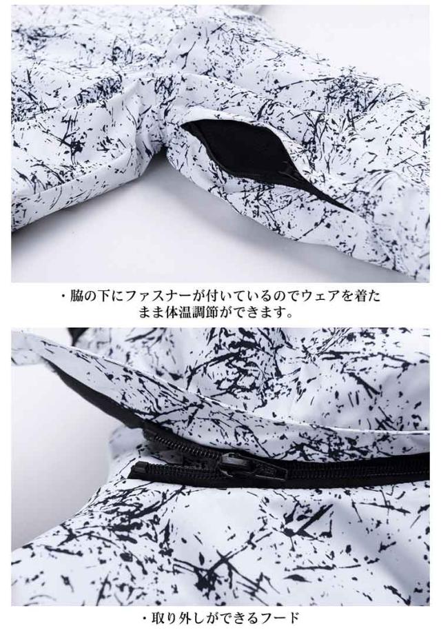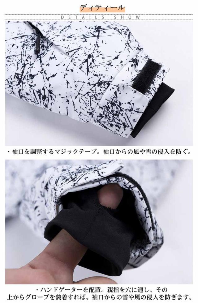 | ジャケット ・袖口を調整するマジックテープ。袖口からの風や雪の侵入を防ぐ。 ・ハンドゲーターを配置。親指を穴に通し、その上からグローブを装着すれば、袖口からの雪や風の侵入を防ぎます ・脇の下にファスナーが付いているのでウェアを着たまま体温調節ができます。 ・取り外しができるフード ・左腕裾にカードが収納できるカードポケットを配置。 ・両サイドには、ファスナー付きのポケットを完備。小物入のれとしてお使いください。 ・裾の間口を調整できるウエストアジャスターを設置しています。 ・裾からの雪や風の侵入を防ぐプロテクション機能。 ・内側にはファスナー付きのポケットを配置。大きめなメッシュ仕様のゴーグルポケットも配置。 ・中綿仕様でしっかり防寒! ・水をはじく撥水性も高く、体温が高めの子供の汗を逃がす透湿性も抜群。 パンツ ・取り外しが可能なサスペンダーを配置。ソフトな肌触りのゴム仕様で、肩への負担を軽減します。 ・両サイドには、ファスナー付きのポケットを配置。 ・ウエストサイドにはゴム仕様で着心地抜群。 ・ブーツゲーターを配置。ブーツの上から被せ、足元からの雪や風の侵入をシャットダウン。強い滑り止めのゴム付きで、ズレ上がりを防止します。 ・サイズ調整が可能な裾口。裾口を広げられるので、ブーツにかぶせる際も楽に脱着が可能です。 ・耐久性のある生地と水の侵入を防ぐ防水加工。 | |