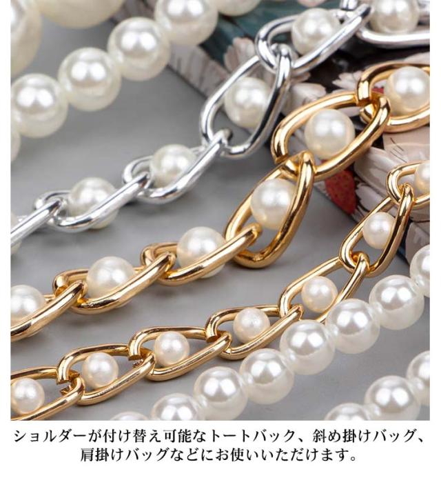 ショルダーストラップ パール バッグチェーン ショルダーベルト ショルダーバッグ 肩紐 レディース バッグ用 チェーンストラップ パール ショルダー紐 ショルダーひも 付け替え 交換用ストラップ チェーンベルト 肩掛け 斜め掛け 鞄 かばん 着せ替え アクセサリー 送料無料