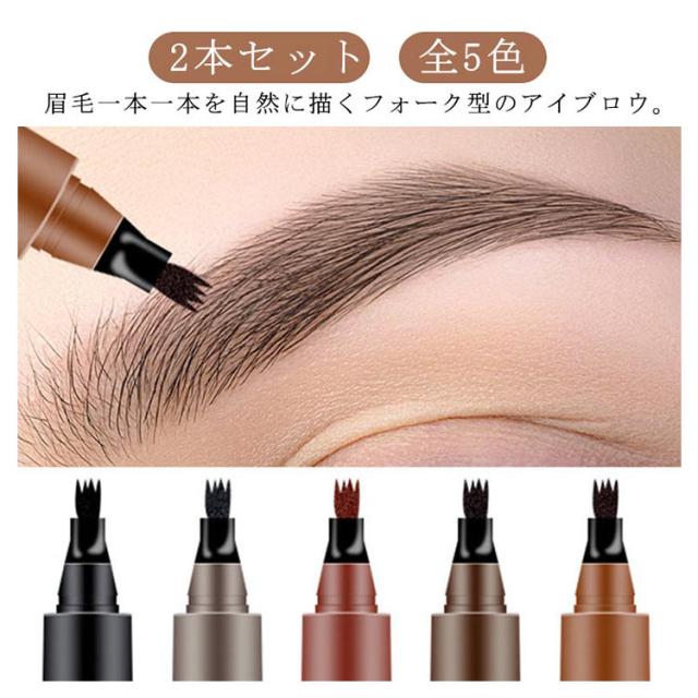 2本セット フォーク アイブロウ ティント 眉ティント 落ちない眉 リキッドペン 汗に強い ウォータープルーフ スウェットプルーフ 自然な仕上がり 全5色 コスメ ナチュラル発色 眉毛 まゆ毛 アイブロウペンシル 送料無料