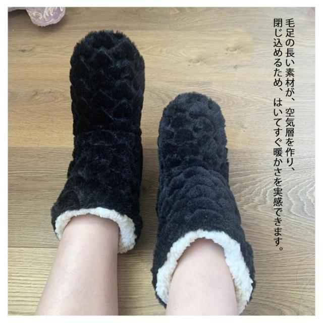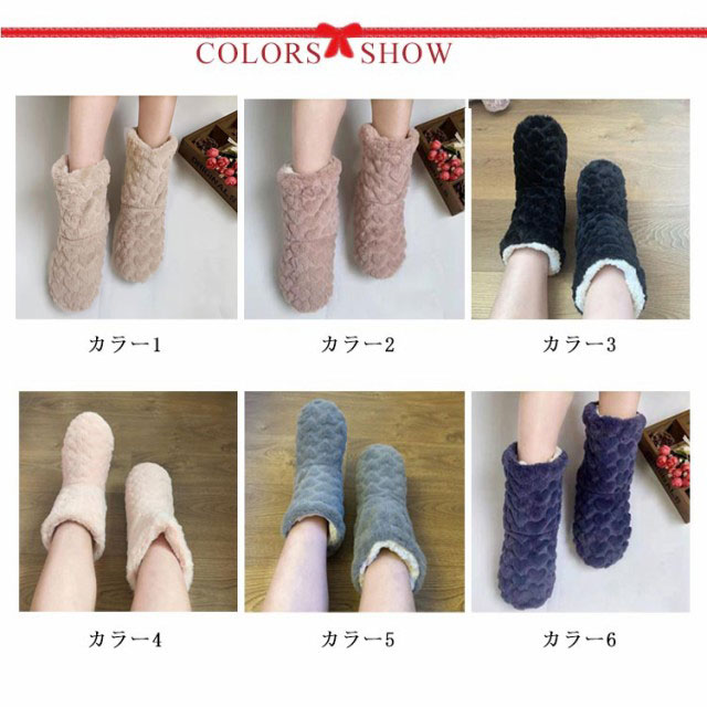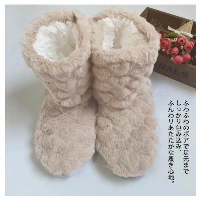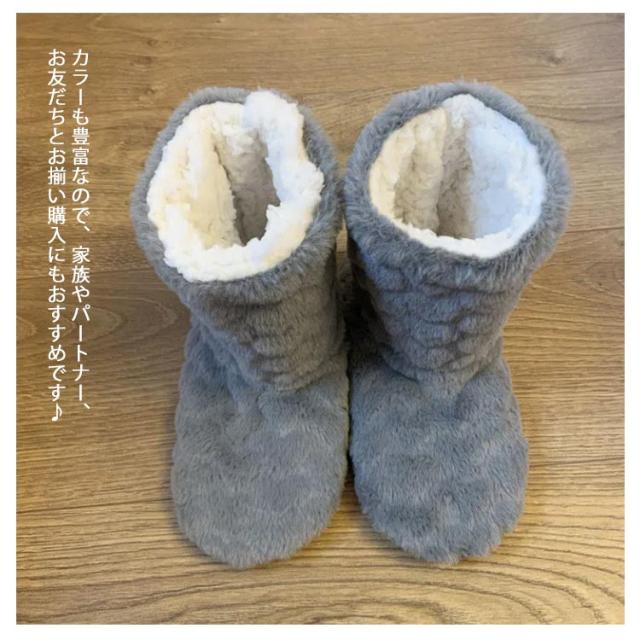 | ブーツタイプのスリッパなので、足首の冷えもしっかりカバーできます。 ふわふわのボアで足元までしっかり包み込み、ふんわりあたたかな履き心地。 毛足の長い素材が、空気層を作り、閉じ込めるため、はいてすぐ暖かさを実感できます。 フローリングでも滑りにくい滑り止めつきで安心です! 柔らかい素材で静音効果も◎歩いた時にパタパタとした音が出にくい。 カラーも豊富なので、家族やパートナー、お友だちとお揃い購入にもおすすめです♪ | |