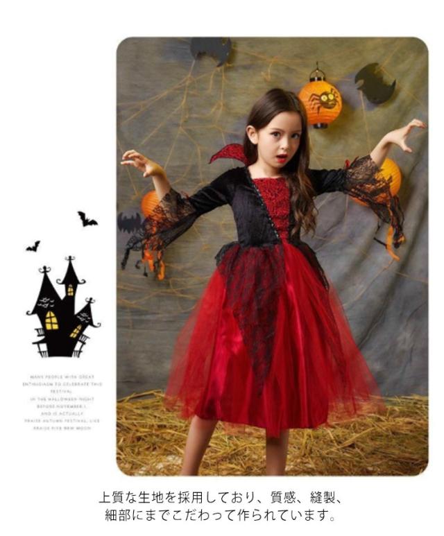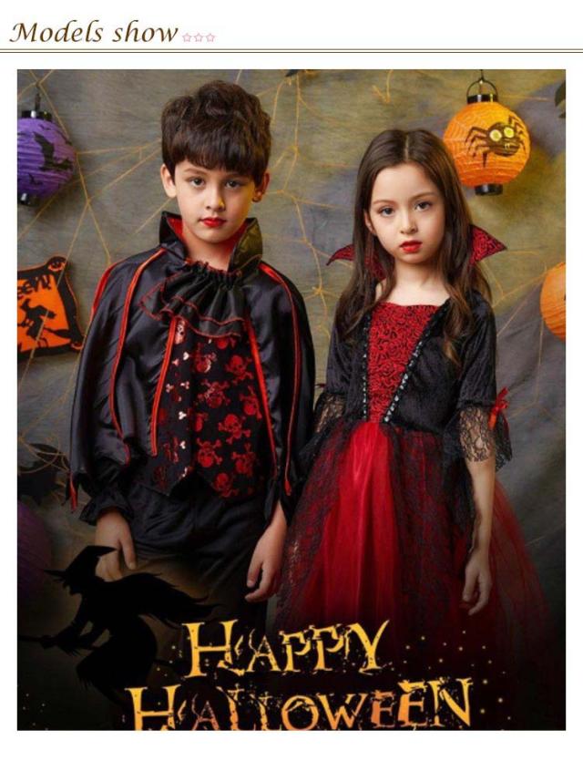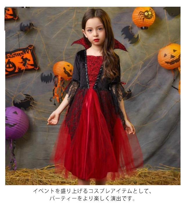 ハロウィン コスプレ 衣装 子供服 吸血鬼 ワンピース バンパイア ドラキュラ コスチューム ケープ風 女の子 男の子 ジュニア 悪魔 Halloween パーティー 仮装用 おばけ イベント 演出服 学園祭 文化祭 送料無料