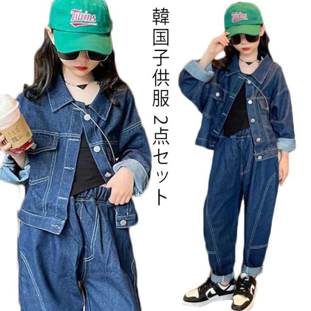 韓国子供服 キッズダンス衣装 セットアップ デニム2点セット スポーツウエア ダンスウエア デニムジャケット 長袖 トップス 男女兼用 k-pop ヒップホップ 上下セット キッズ ジュニア おしゃれ カジュアル