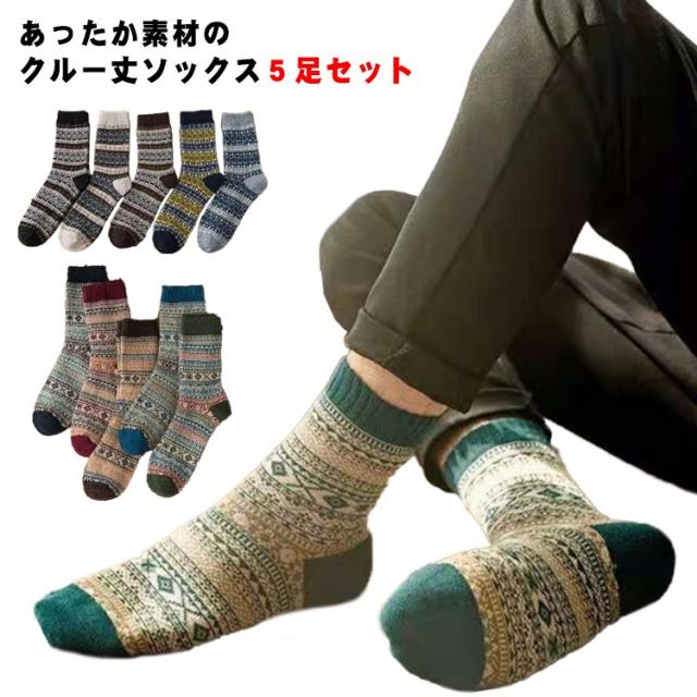 送料無料 ソックス メンズ 5足セット 冬 あったか 靴下 スニーカーソックス ビジネス クルーソックス ショートソックス 厚手 ウール混 防寒ソックス 暖かい 無地 シンプル 冷え症 伸縮性 防臭 消臭靴下 ルームソックス カジュアル 厚地 秋冬用