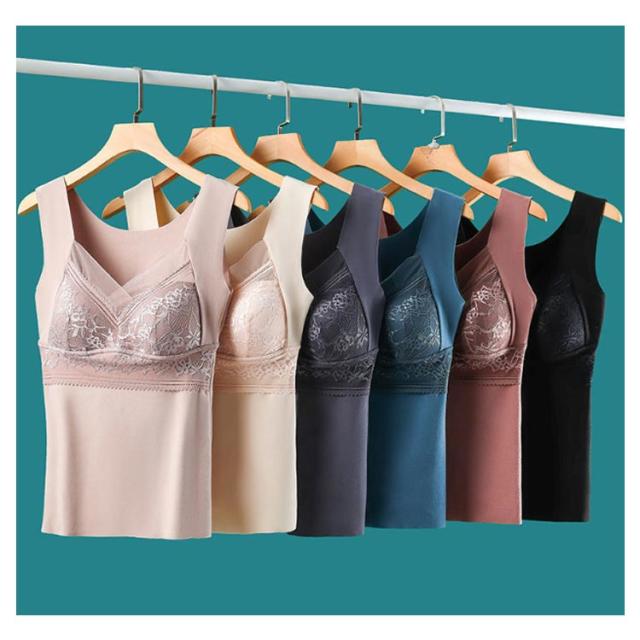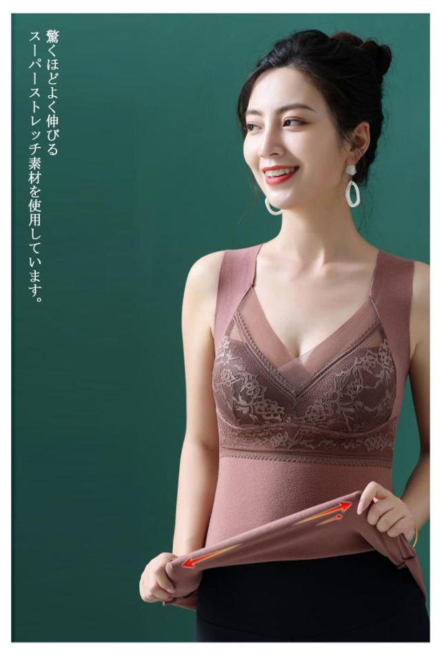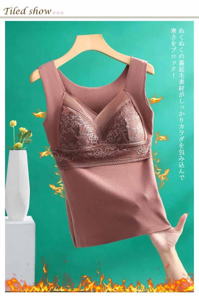 タンクトップ レディース 秋冬 あったか インナー レース 肌着 下着 暖かい 吸湿発熱 バストアップ 盛れる 裏起毛 厚手 伸びる 防寒 寒さ対策 発熱インナー カップ付き 送料無料