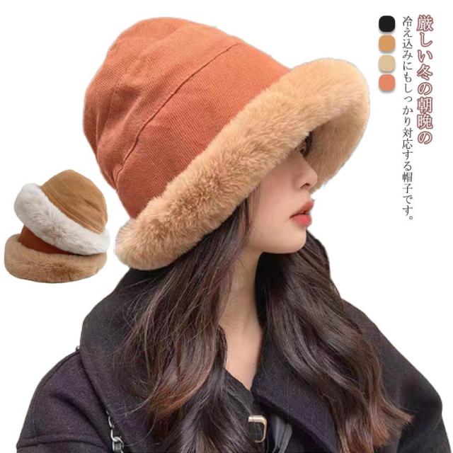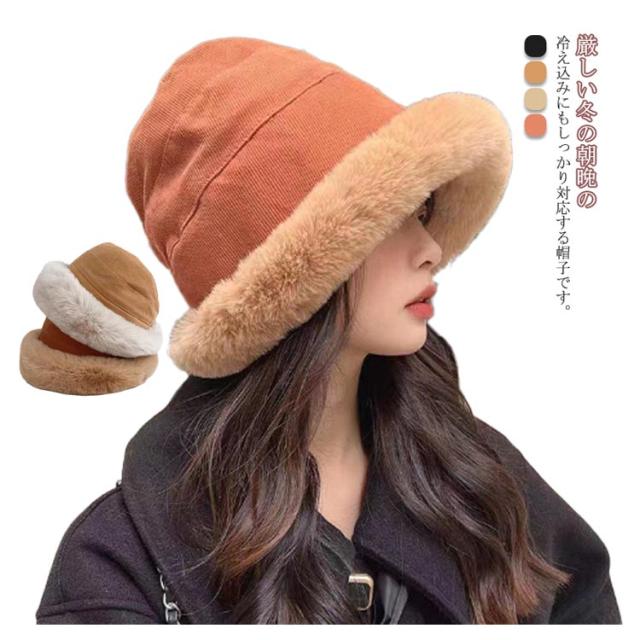 帽子 レディース バケットハット 秋冬 ファー 裏ボア ふわふわ 防寒 耳当て あったか 厚手 小顔効果 無地 可愛い 防寒 お洒落 スノボー スキー アウトドア 通勤 送料無料