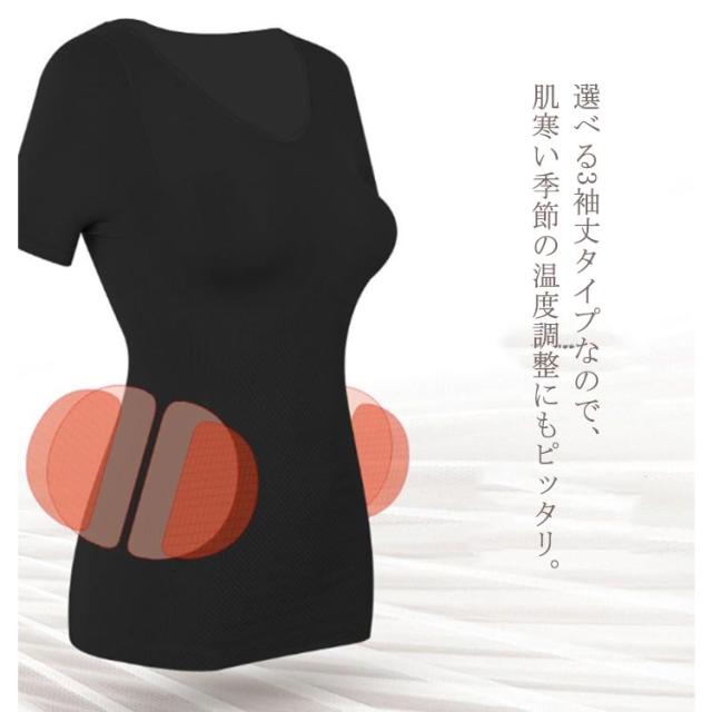 | シンプルなデザインに、恒温のインナーシャツ。 適度な加圧でウエストから下腹までシェイプ。 ソフトでしなやかな肌あたりが気持ちいい。 選べる3袖丈タイプなので、肌寒い季節の温度調整にもピッタリ。 | |