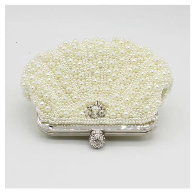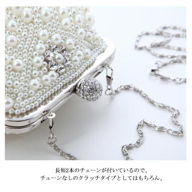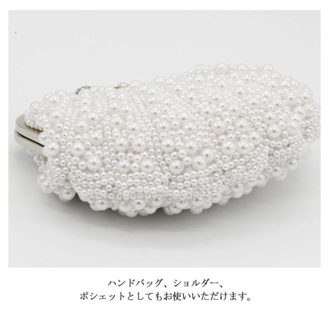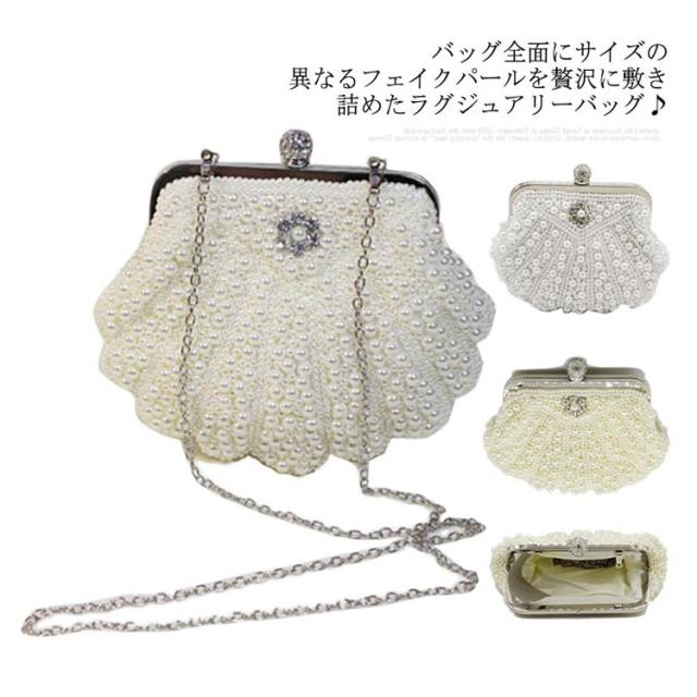 送料無料 3way パーティーバッグ クラッチバッグ パール ビジュー ビーズ シェル バッグ パーティー パーティ ショルダー クラッチ 財布 チェーン がまぐち ハンドバッグ がま口 サブバッグ ホワイト ブラック 白 黒 ベージュ 結婚式 二次会 演奏会