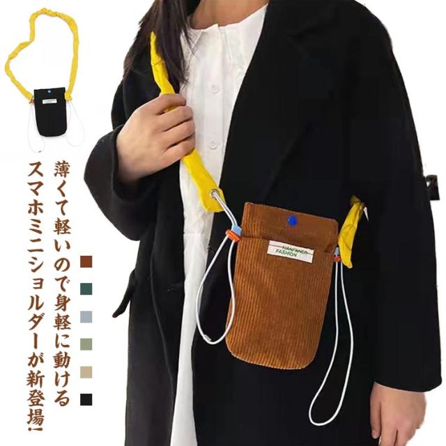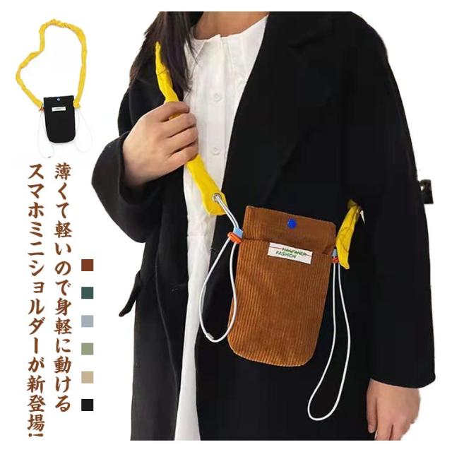 【送料無料】スマホポーチ スマホ ポシェット ミニバッグ ミニショルダー スマホバッグ サコッシュ 斜め掛け 軽量 大容量 薄い コーデュロイ お財布ポシェット お財布バッグ ショルダー スマホケース 通勤 レディース メンズ 男女兼用