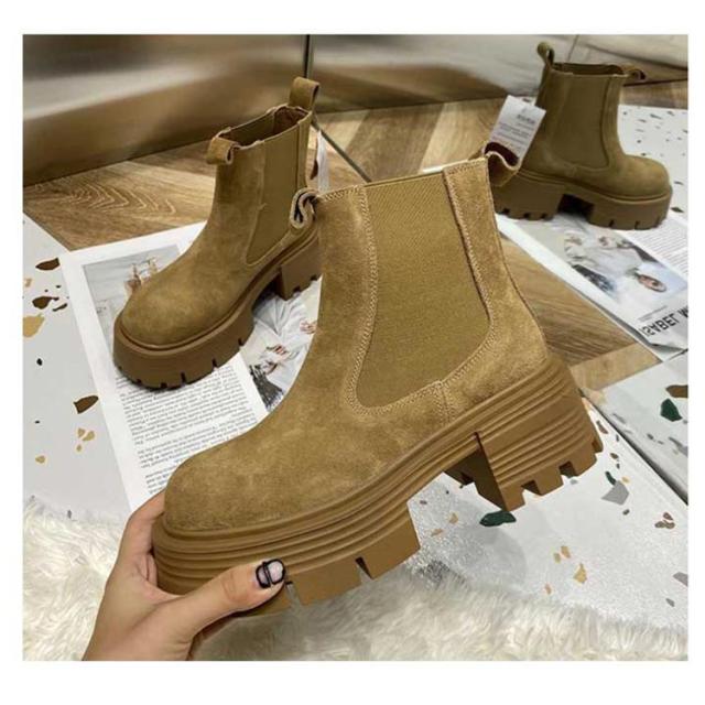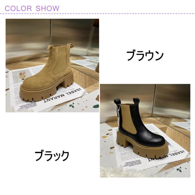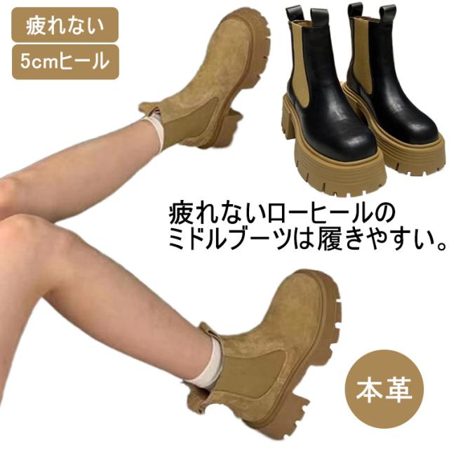 ショートブーツ レディース ローヒール サイドゴアブーツ ブーツ レディース 本革 スエード 厚底靴 5cmヒール 大きめ 太ヒール カジュアル ワイズ 幅広 甲高 レディースブーツ おしゃれ 疲れない ブラック ブラウン