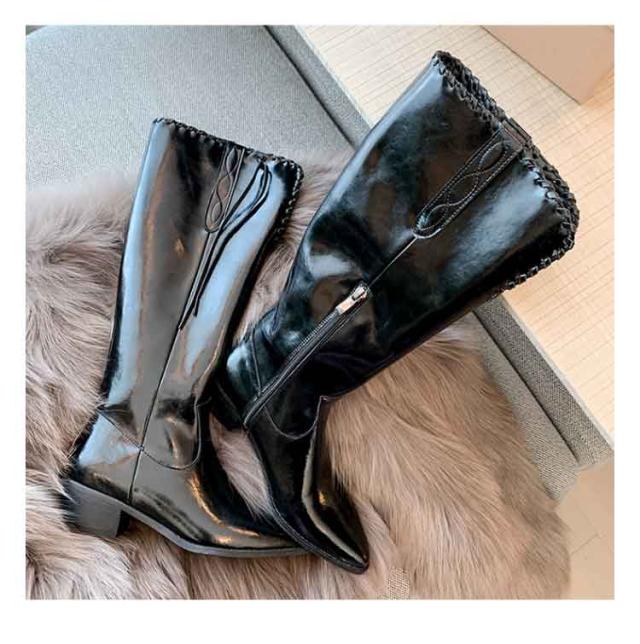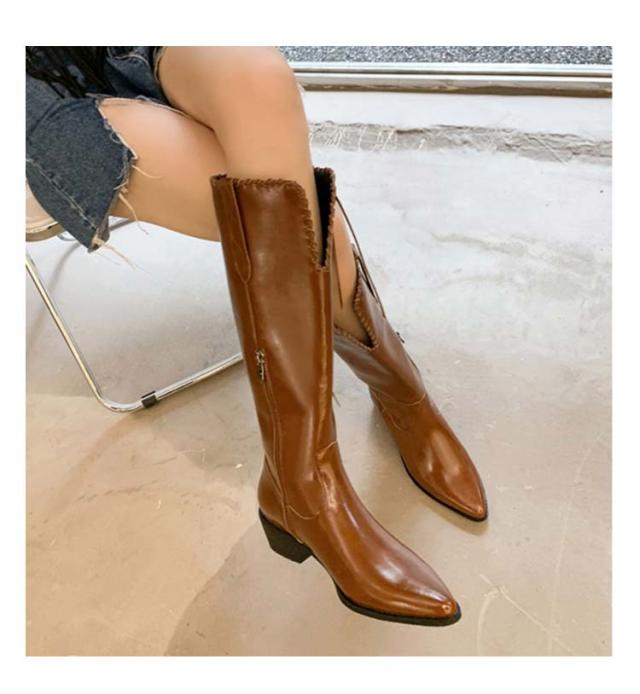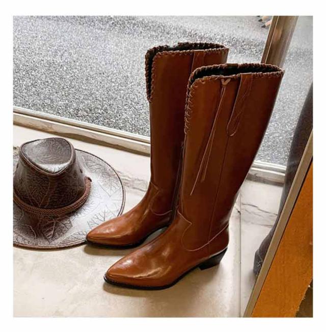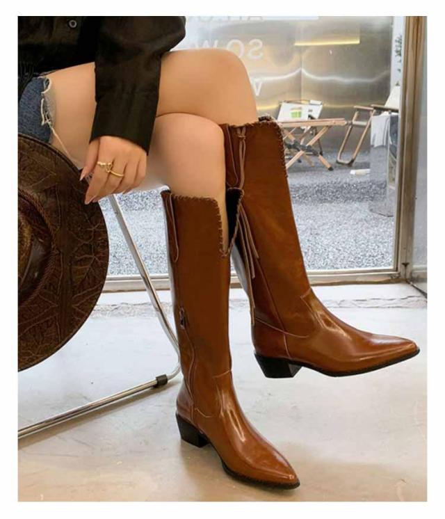ウエスタンブーツ レディース ブーツ ロングブーツ 太ヒール ウエスタン タッセル 低ヒール ローヒール ヴィンテージ ビンテージ 韓国ファッション