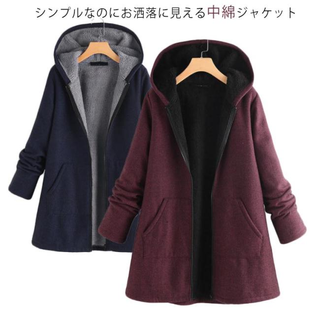 【送料無料】中綿コート レディース ジャケット もこもこ 裏起毛 あったか 長袖 防寒 防風 秋冬 きれいめ おしゃれ 洗える ブルゾン ハーフコート ハーフ丈 アウター フード付き スリム 無地 シンプル 大きいサイズ 通勤 普段着 防寒着