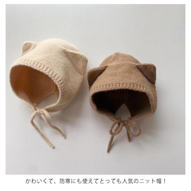 アニマルフードのニット帽耳付き ベビー用 4-12ヶ月使用 ニット帽 帽子 ぼうし 耳付き こども ベビー 赤ちゃん 女の子 男の子 キャップ 無地 アニマル 韓国子供服