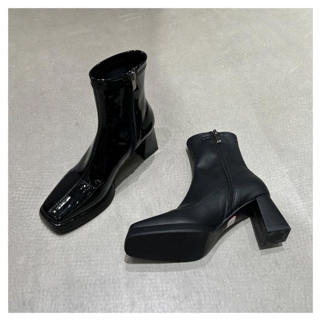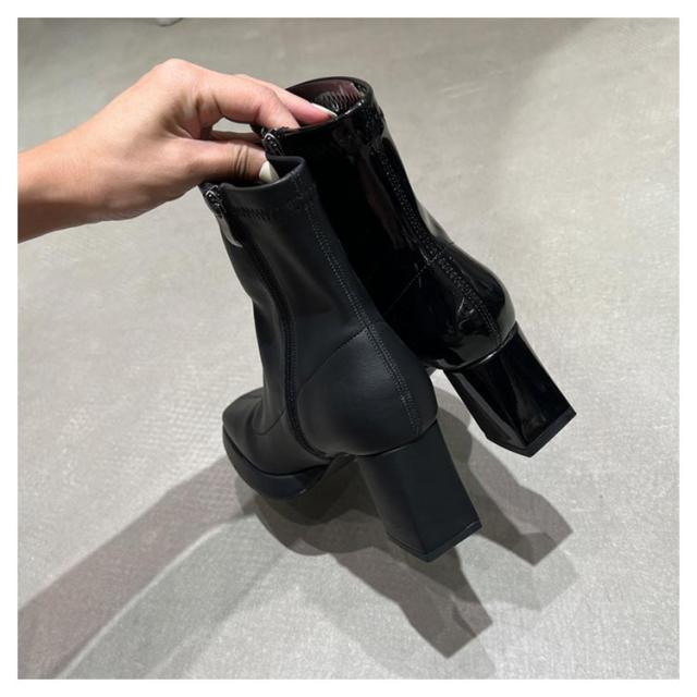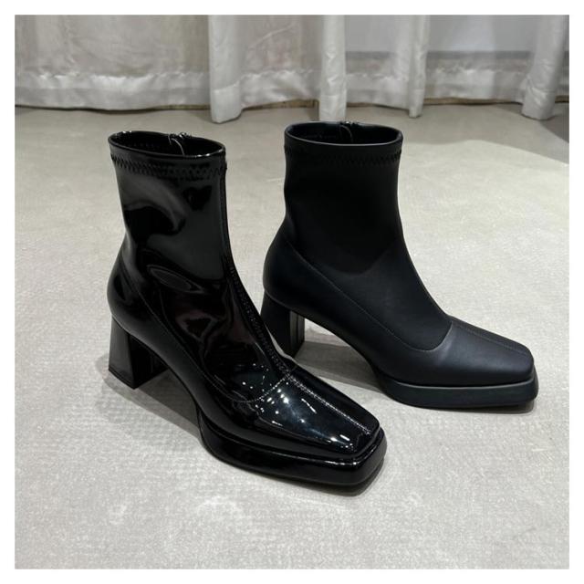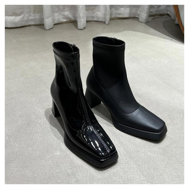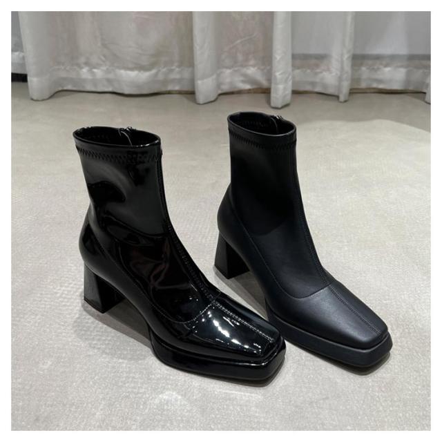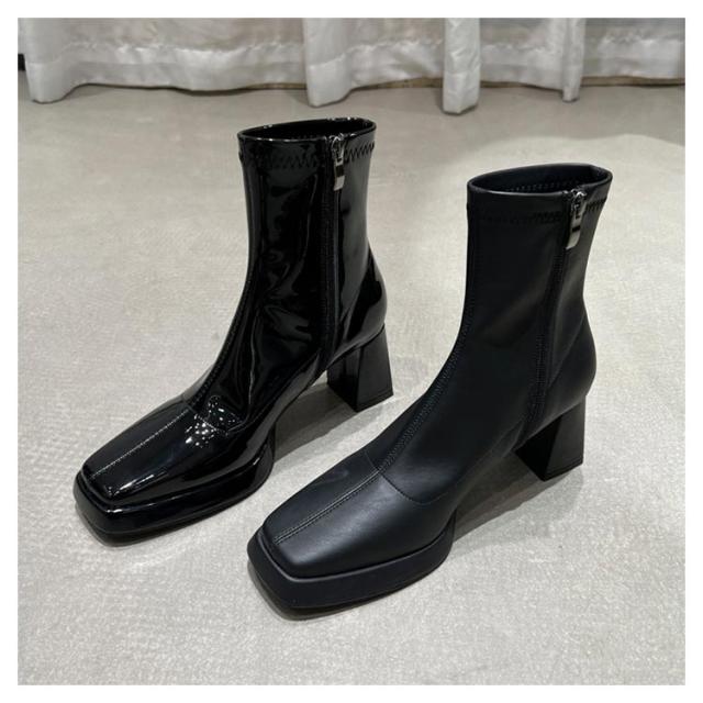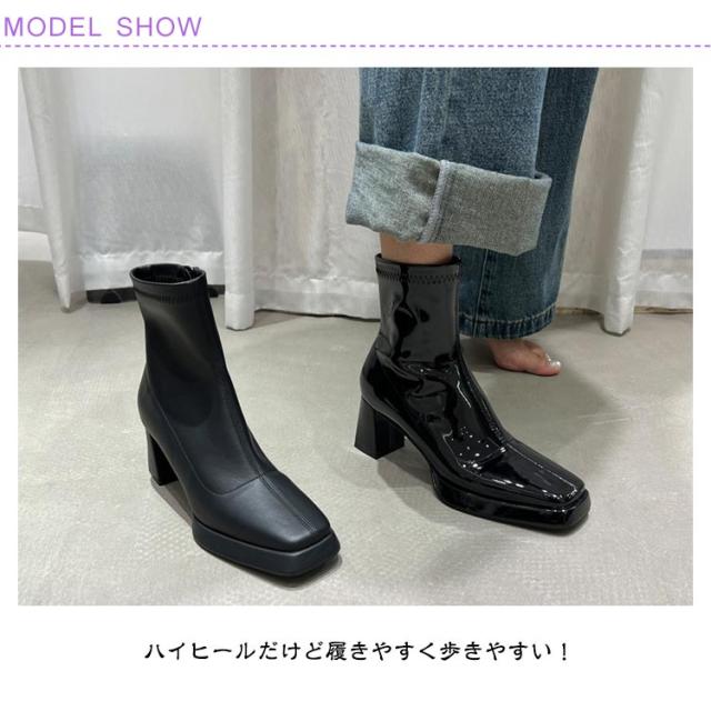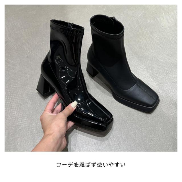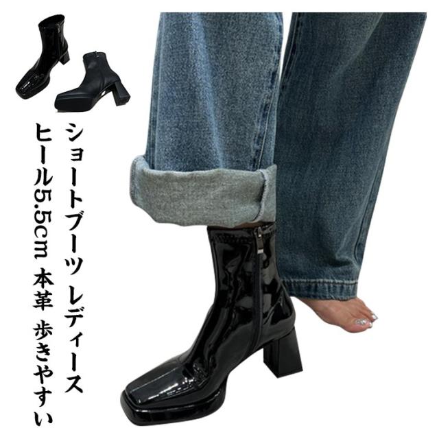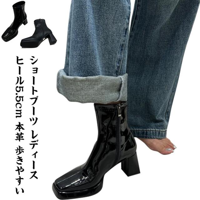 ショートブーツ レディース ブーツ ヒール ブーツ ヒール5.5cm 本革 歩きやすい おしゃれ レディース ヒール ブーツ ブラック 黒