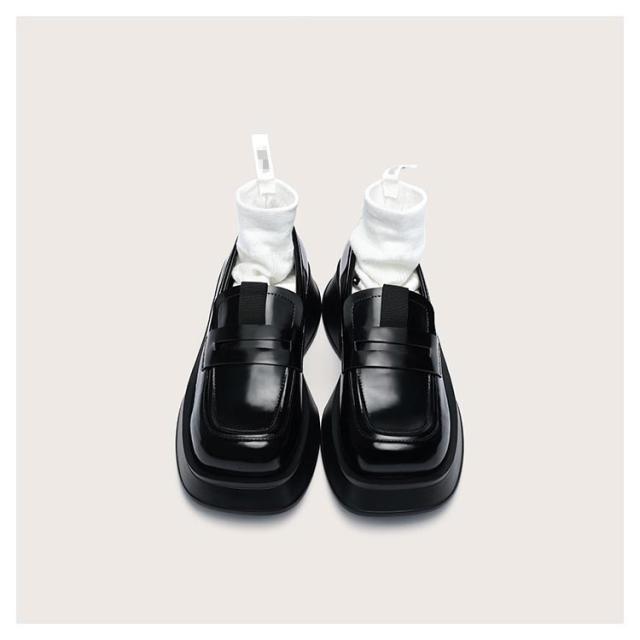 ローファー ローファー パンプス レディース シューズ パンプス 厚底シューズ スクエアトゥ 厚底パンプス 春秋 PU 革 ローファートゥクン 防滑 ヒール高4.5cm 歩きやすい 疲れない シンプル 秋新作
