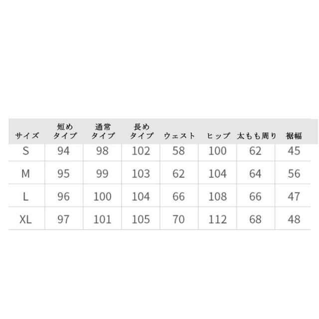| サイズ | S(短め) M(短め) L(短め) XL(短め) S(通常) M(通常) L(通常) XL(通常) S(長め) M(長め) L(長め) XL(長め) |