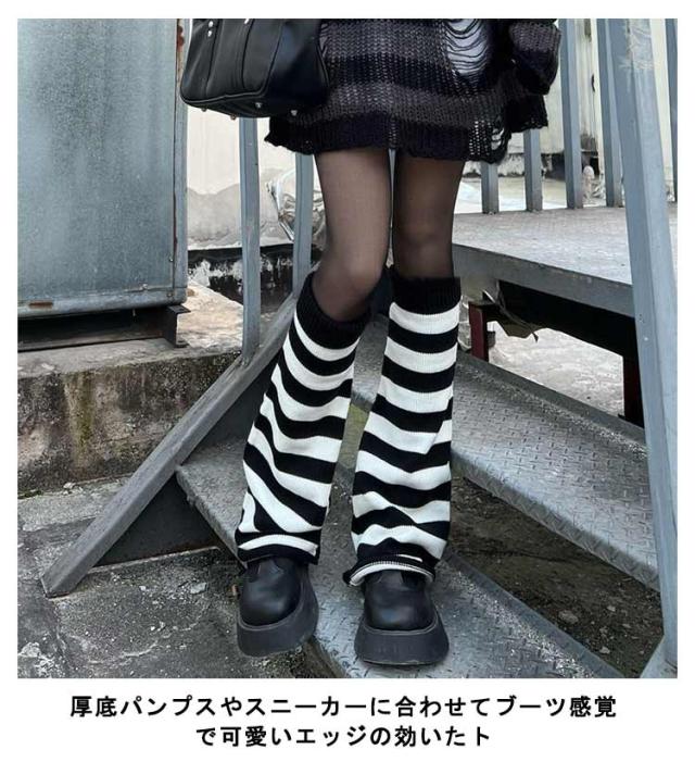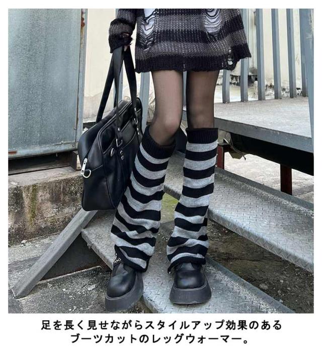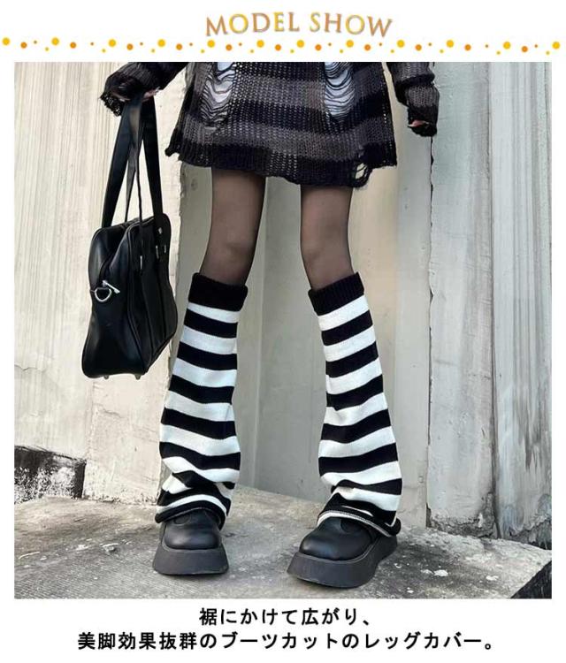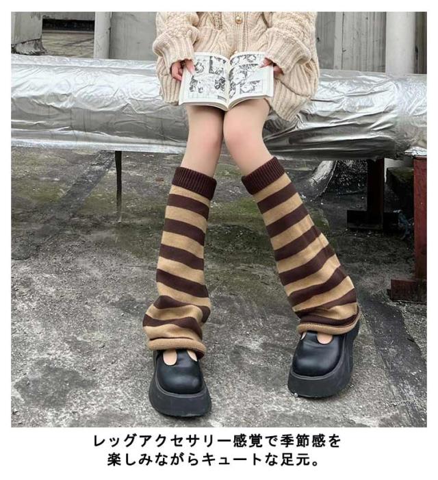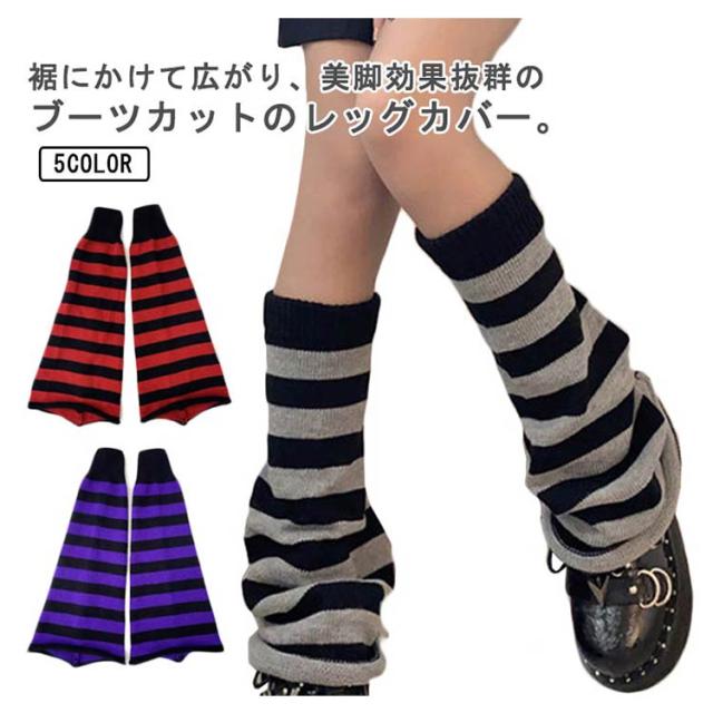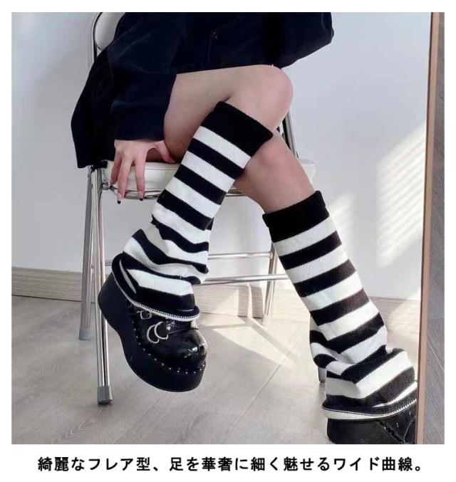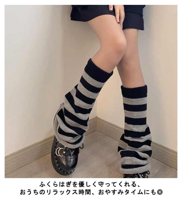 ルーズソックス ワイドレッグウォーマー レディース レッグカバー フレア ブーツカット ルームソックス 美脚 ロング ギャル 足首 保温 防寒 暖かい ハイソックス スクール ルーズ靴下 可愛い ボーダー柄 送料無料