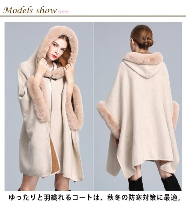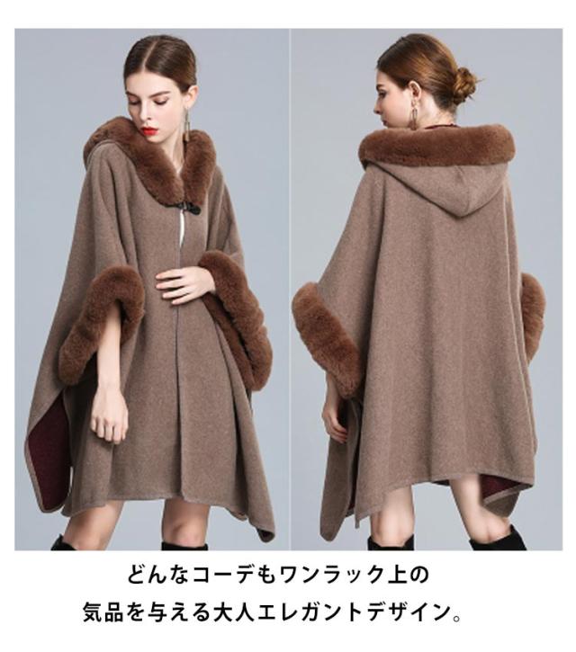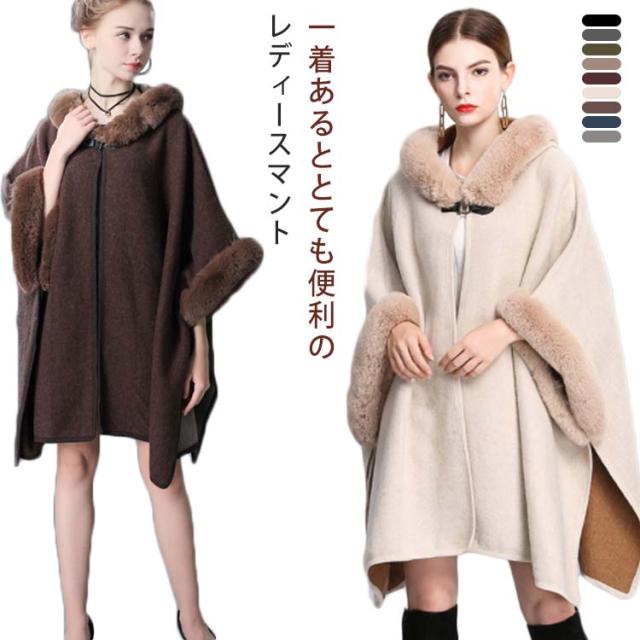 【送料無料】マント コート レディース アウター 秋冬 お洒落 きれいめ 大人 羽織 ポンチョ ミディ丈 フェイクファー お呼ばれドレス パーティー ワンピース オフィスカジュアル 女子会 結婚式 同窓会 成人式 フォーマル 無地 ギフト プレゼント