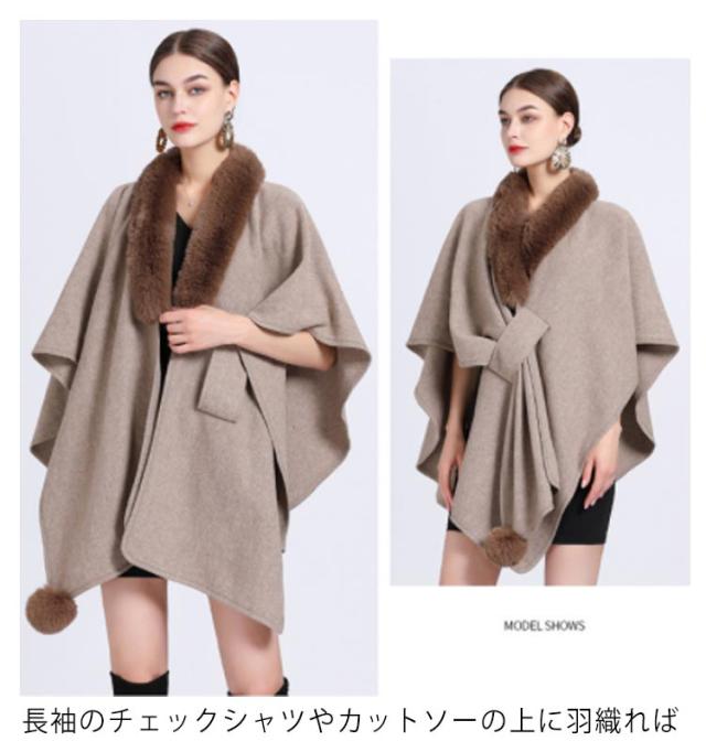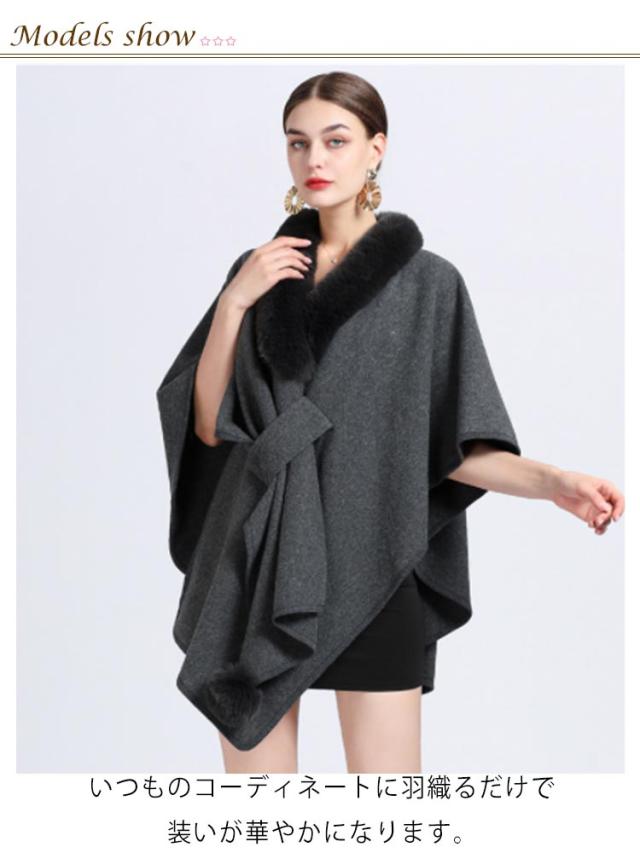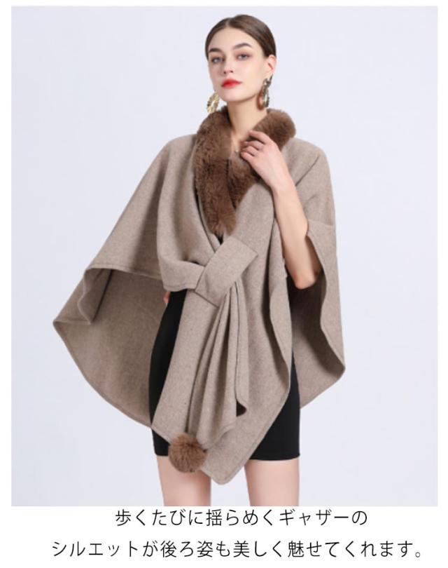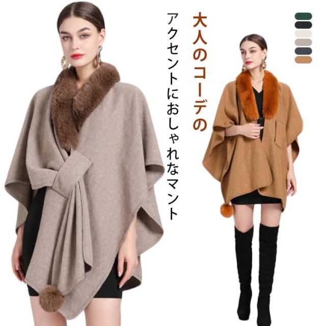 【送料無料】マント コート レディース アウター 秋冬 お洒落 きれいめ 大人 羽織 ポンチョ ミディ丈 フェイクファー お呼ばれドレス パーティー ワンピース オフィスカジュアル 女子会 結婚式 同窓会 成人式 フォーマル 無地 ギフト プレゼント