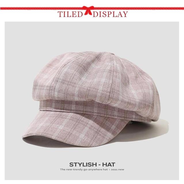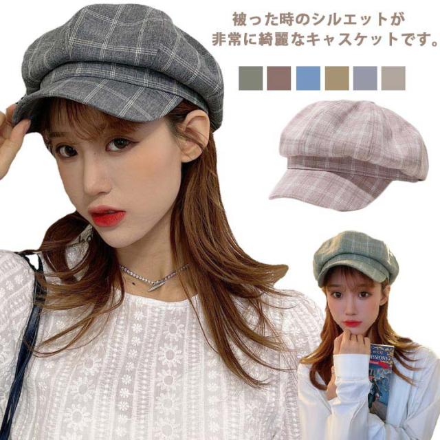 キャスケット 帽子 レディース 秋冬 小顔効果 ハット ベレー帽 チェック柄 キャップ 大きいサイズ 防寒 日除け 可愛い ギフト 暖かい UVカット シンプル つば付き カジュアル 紫外線対策 おしゃれ 送料無料