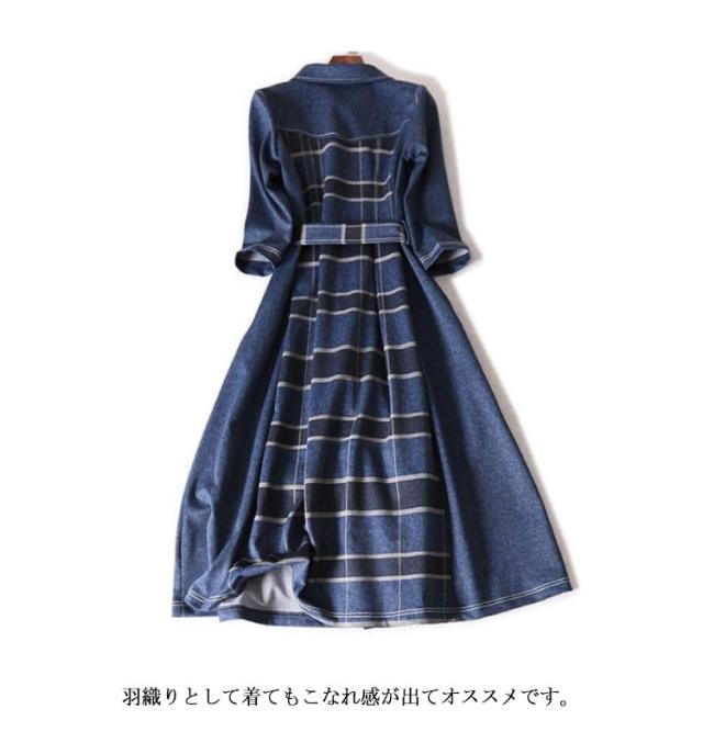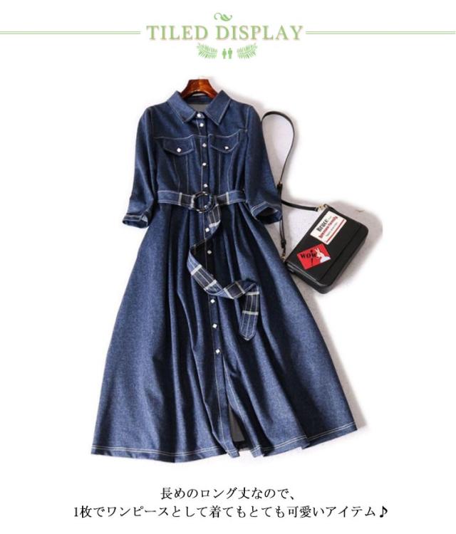 デニムワンピース ロング丈 シャツワンピース デニムワンピ 体型カバー 大人 フェミニン マキシ丈 防寒 シンプル 春 秋 カジュアル エレガント 着痩 大きいサイズ 通勤 オフィス 上品 お呼ばれ 飲み会 二次会 同窓会 送料無料