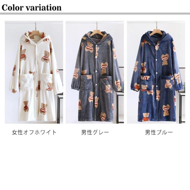 ルームウエア 着る毛布 女性 男性 部屋着 クマ 熊 リラックス 冬 もこもこ 暖かい 大きいサイズ 大人 レディース メンズ お揃い カップル ペア ガウン 羽織 秋冬 レディースパジャマ メンズパジャマ