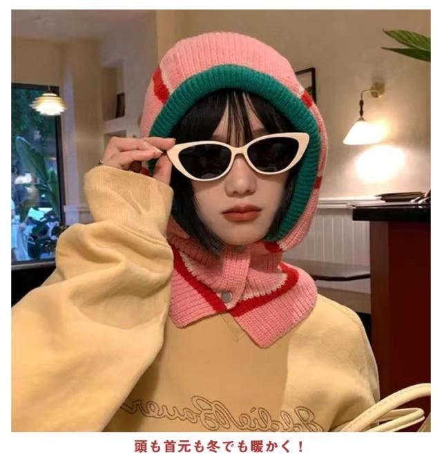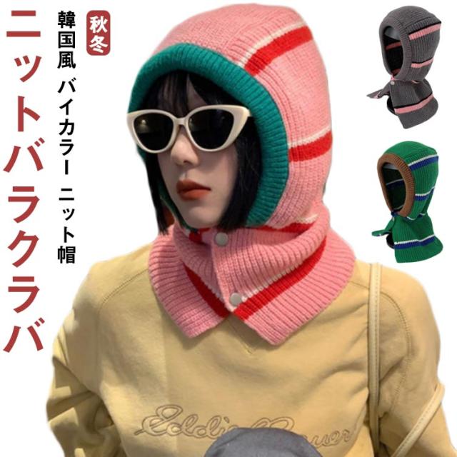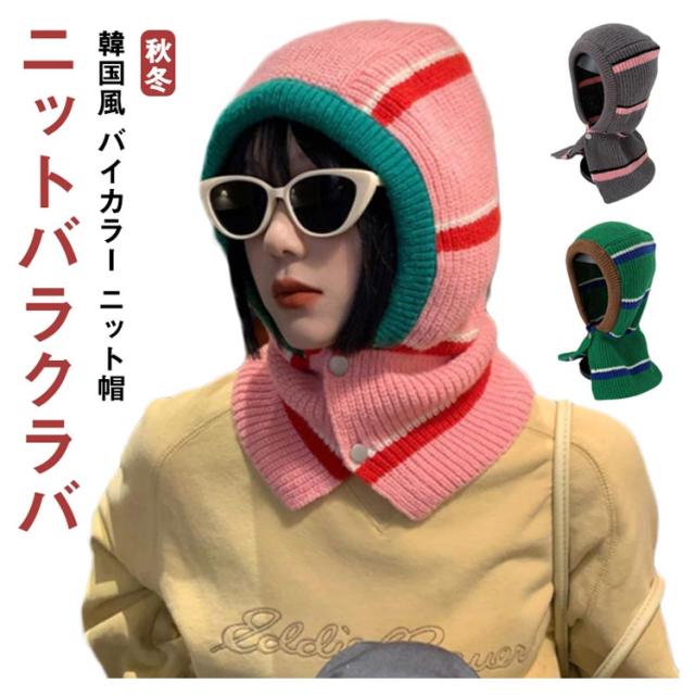 韓国風 バイカラー ニット帽 バラクラバ ニット バラクラバ 秋冬 あったか バラクラバ ネックウォーマー フードマフラー フード付き ネックウォーマー 防寒 おしゃれ フードウォーマー 秋冬 ニット 帽子 ニットキャップ 付けフード マフラー 帽子 防寒 暖かい 送料無料