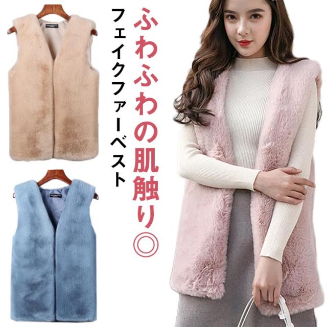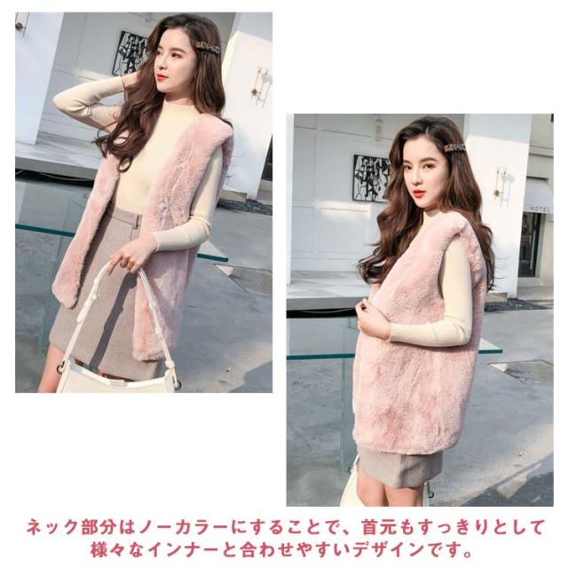 フェイク ラビットファー ベスト ミドル丈 フェイクファー ベスト エコファー ベスト ラビットファー風 ベスト 秋冬 ベスト ボリューム フェイクファーベスト レディース フェイクファー ジャケット ノースリーブ ノーカラー ジャケット 送料無料
