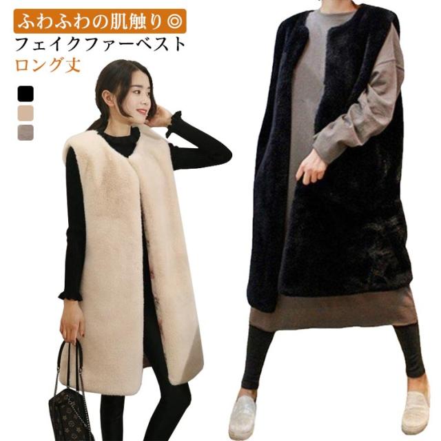 ロング丈 フェイクファー ベスト ラビットファー風 ベスト エコファー ベスト 秋冬 ベスト ボリューム フェイクファーベスト レディース フェイクファー ジャケット ノースリーブ ノーカラー ジャケット フェイク ファーベスト フェイク 毛皮 ベスト 秋冬ベスト 送料無料