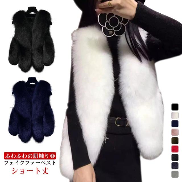 ショート丈 フェイクファー ベスト レディース フェイク 毛皮 ベスト フェイク フォックスファー ベスト エコファー ベスト フォックスファー風 ベスト 秋冬 ベスト ボリューム フェイクファーベスト フェイクファー ジャケット ノースリーブ 送料無料