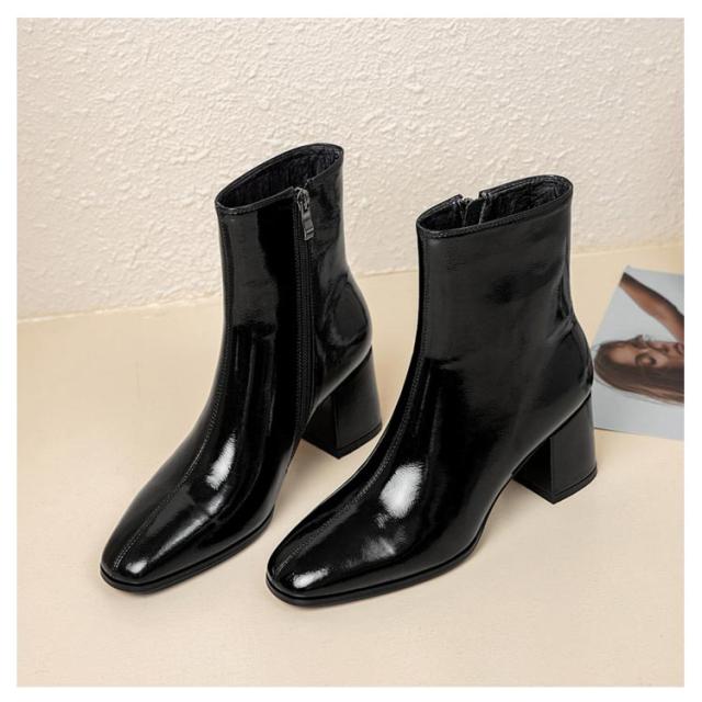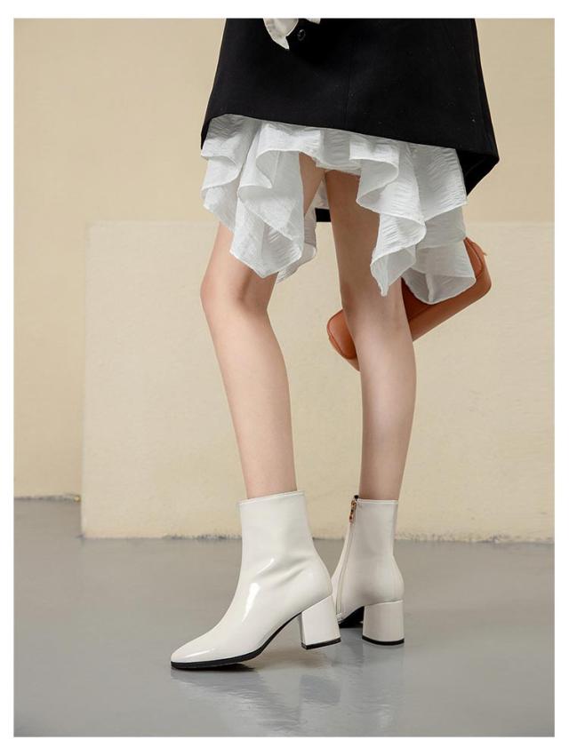 サイドファスナー ラウンドトゥ ショートブーツ 太めヒール ショートブーツ レディース ブーツ チャンキーヒール ブーツ ショート丈 6.5cm ヒール ショートブーツ サイドジップ ショートブーツ 痛くない ブーツ 歩きやすい 靴 シューズ 送料無料