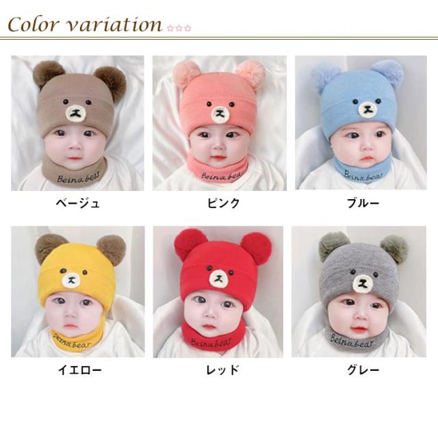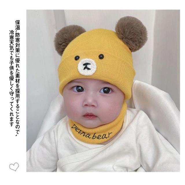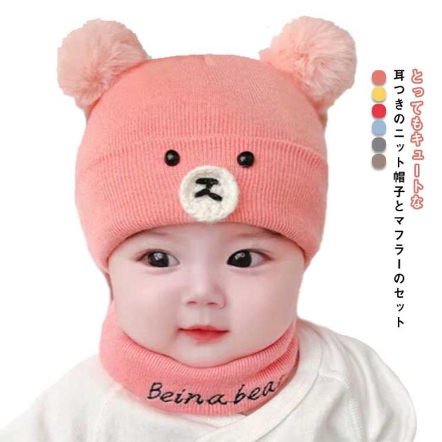 送料無料 ベビー キッズ ニット帽 ネックウォーマー セット クマ耳 あったか ニットキャップ 帽子 ニット帽子 防寒 保温 赤ちゃん 孫 子供 男の子 女の子 帽子 マフラー 暖かい 温かい スヌード 春 秋 冬 秋冬 誕生日 かわいい あったか スノボ スキー
