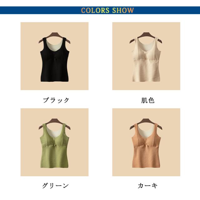 | 両面起毛のあったかインナー!カップ付きでブラ不要 体にフィットするシルエットで安心感も◎ 丈感もしっかりありお腹まで温めてくれる秋冬に活躍間違いなしの1枚♪ タンクトップなのでトップスのお袖の長さを気にせずに合わせて頂けるのも嬉しいポイント♪ お洋服に響きにくいお色味の展開で合わせるお洋服を選ばず合わせていただけます Vネックで首元もスッキリ◎ トップスに響きにくいなお色味の展開でご用意しております♪ | |