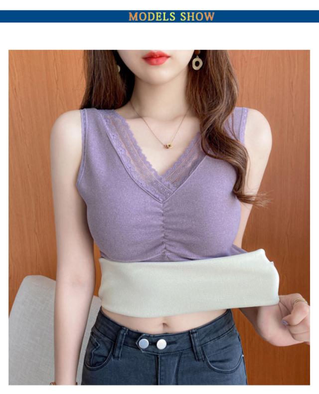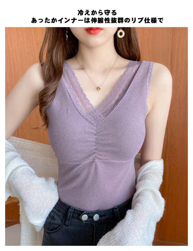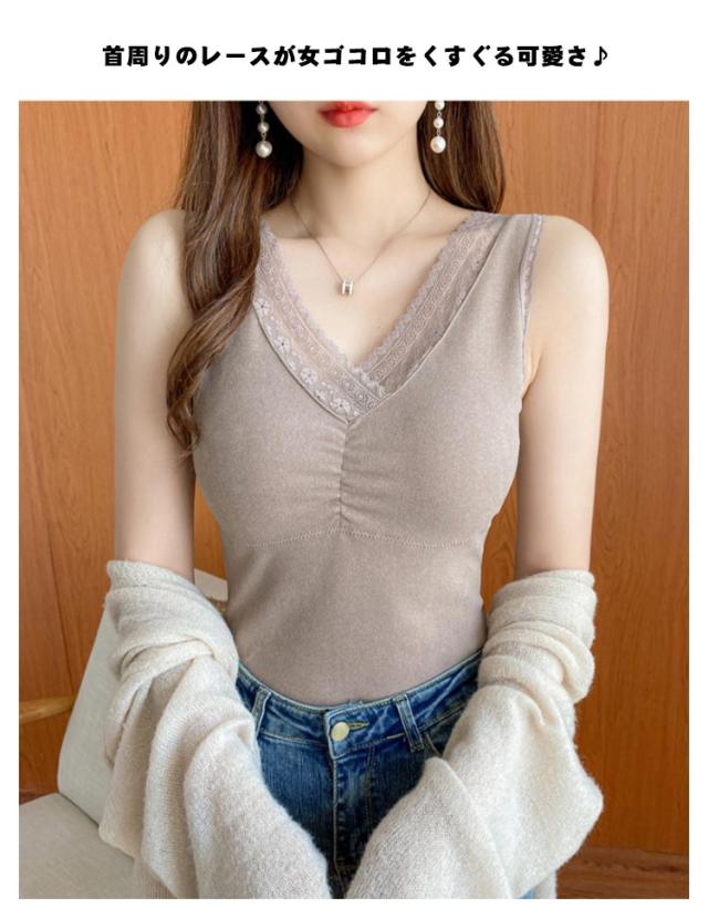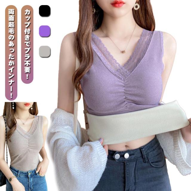 送料無料 カップ付きインナー キャミソール インナー 裏起毛 秋冬 レディース タンクトップ レース セクシー 可愛い 暖かい もこもこ 冬 裏起毛ブラトップ あったかインナー カップ付きキャミ ルームウェア 部屋着 重ね着 vネック 下着 フィット 伸縮性