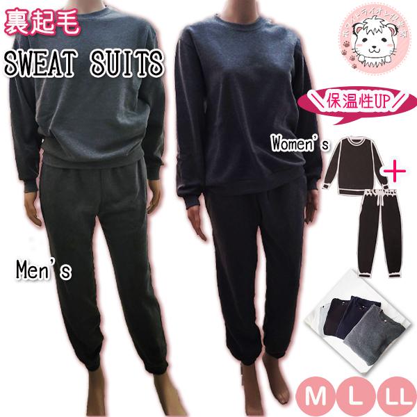 【アウトレット】スウェット 上下 裏起毛 ルームウェア 暖かい メンズ レディース セットアップ 起毛 無地 パジャマ M/L/LL