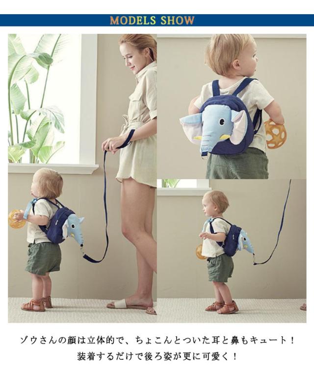 | いつものお散歩がもっと楽しくなる!ゾウ型のリュックでお子様も大喜び♪ ゾウさんの顔は立体的で、ちょこんとついた耳と鼻もキュート!装着するだけで後ろ姿が更に可愛く! ハーネスは取り外し可能なので、普段はかわいいリュックとしても使えます。 底マチも有り、オムツなどを収納可能なお子様にちょうどいいサイズ感。 公園、お散歩、お買い物など、お子様とのお出かけシーンで大活躍です。 | |