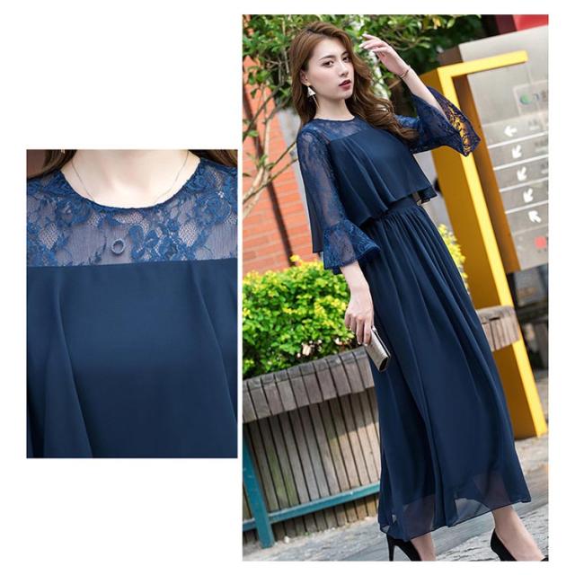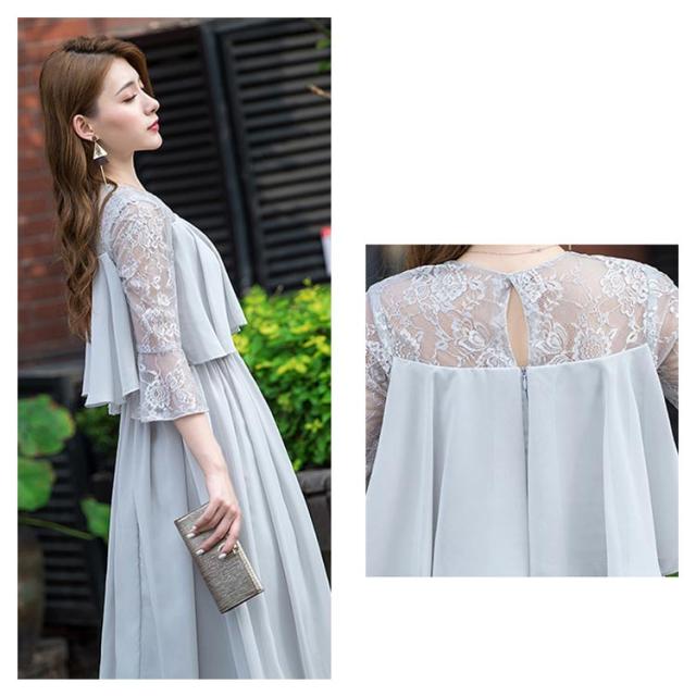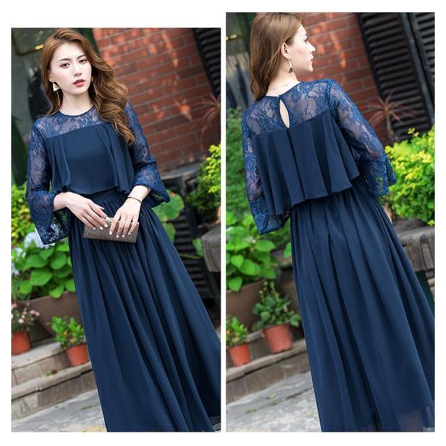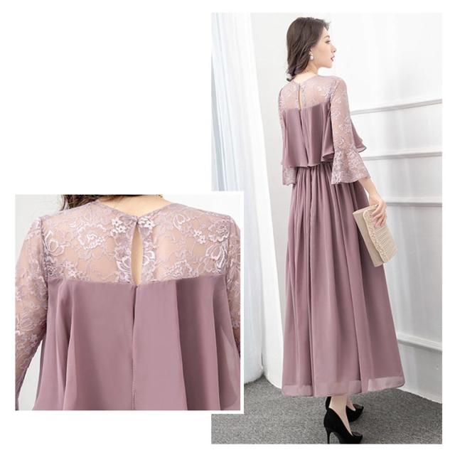 結婚式 ワンピース ロング丈 パーティードレス フォーマルドレス 袖あり 着痩せ 体型カバー レース 二の腕カバー ロングドレス 成人式 同窓会 お呼ばれ ミセス 20代 30代 40代 50代 母親 冬 秋 春 秋冬