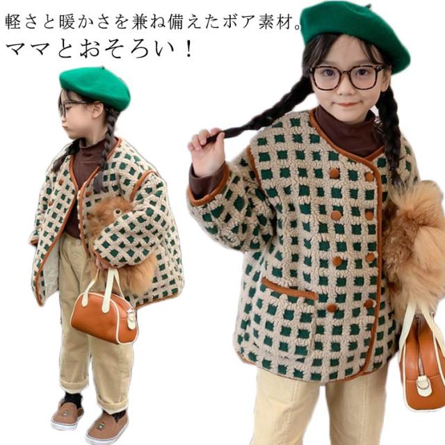 送料無料 ボア ジャケット フリース ブルゾン キッズ 女の子 男の子 アウター ボアコート ボアジャケット ショート丈 コート もこもこ 防寒 軽い 親子コーデ 子供服 ボーイッシュ おしゃれ モカ アイボリー