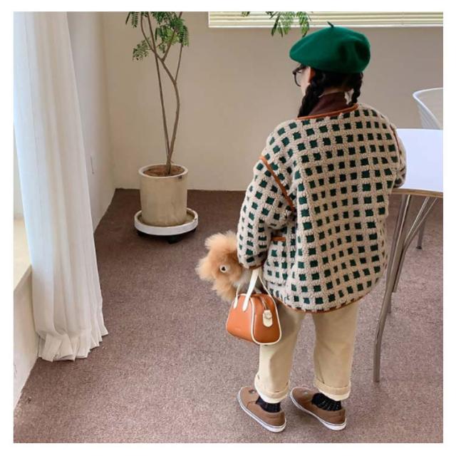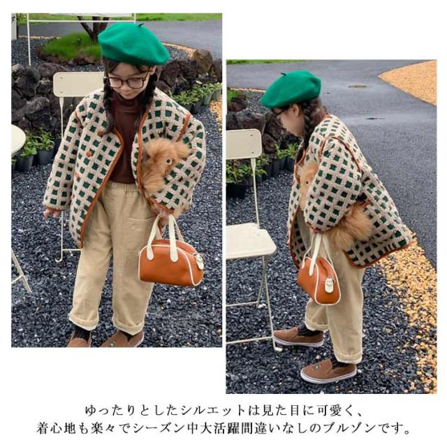 | 軽さと暖かさを兼ね備えたボア素材。ママとおそろい! 柔らかく着心地も快適です。 ポケット口と前立て部分はアクセントにエコスウェード素材を使用。 ゆったりとしたシルエットは見た目に可愛く、着心地も楽々でシーズン中大活躍間違いなしのブルゾンです。 | |
