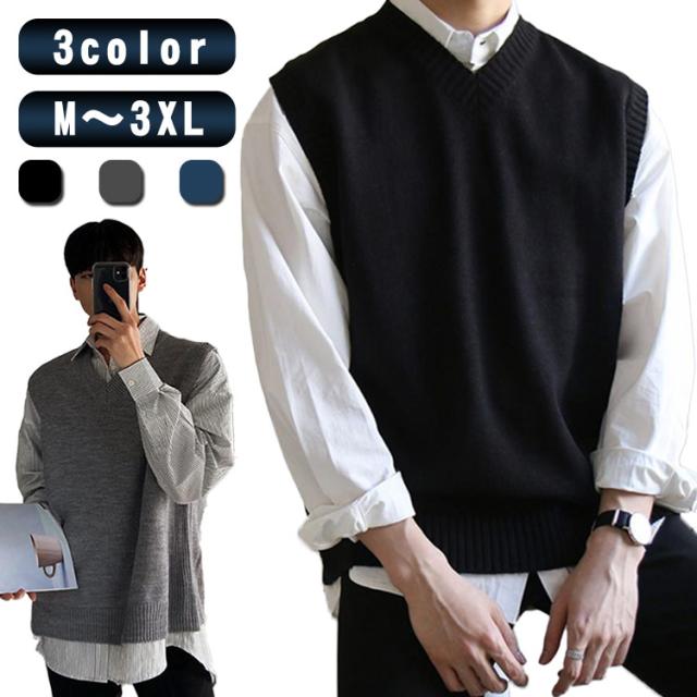 ベスト メンズ ビジネス ニットベスト 送料無料 vネック M〜4L スクールベスト カジュアル 秋 冬 洗える シンプル 無地 大きいサイズ 黒 紺 通勤 カジュアル M L LL 3L 4Lジレ
