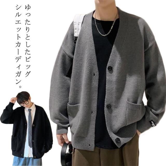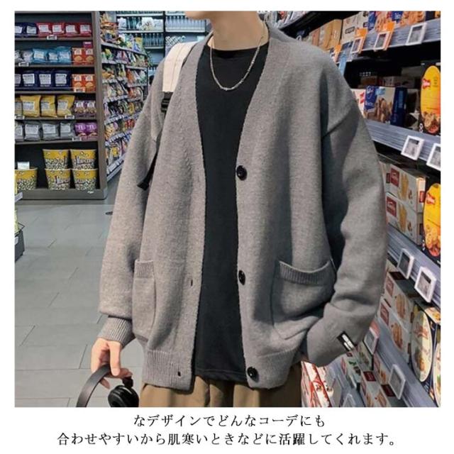 カーディガン メンズ アウター オーバーサイズ 秋服 春 冬 無地 ゆったり ニットカーディガン セーター おしゃれ Vネック カジュアル メンズファッション ジャケット コート 大きいサイズ 長袖 暖かい 送料無料